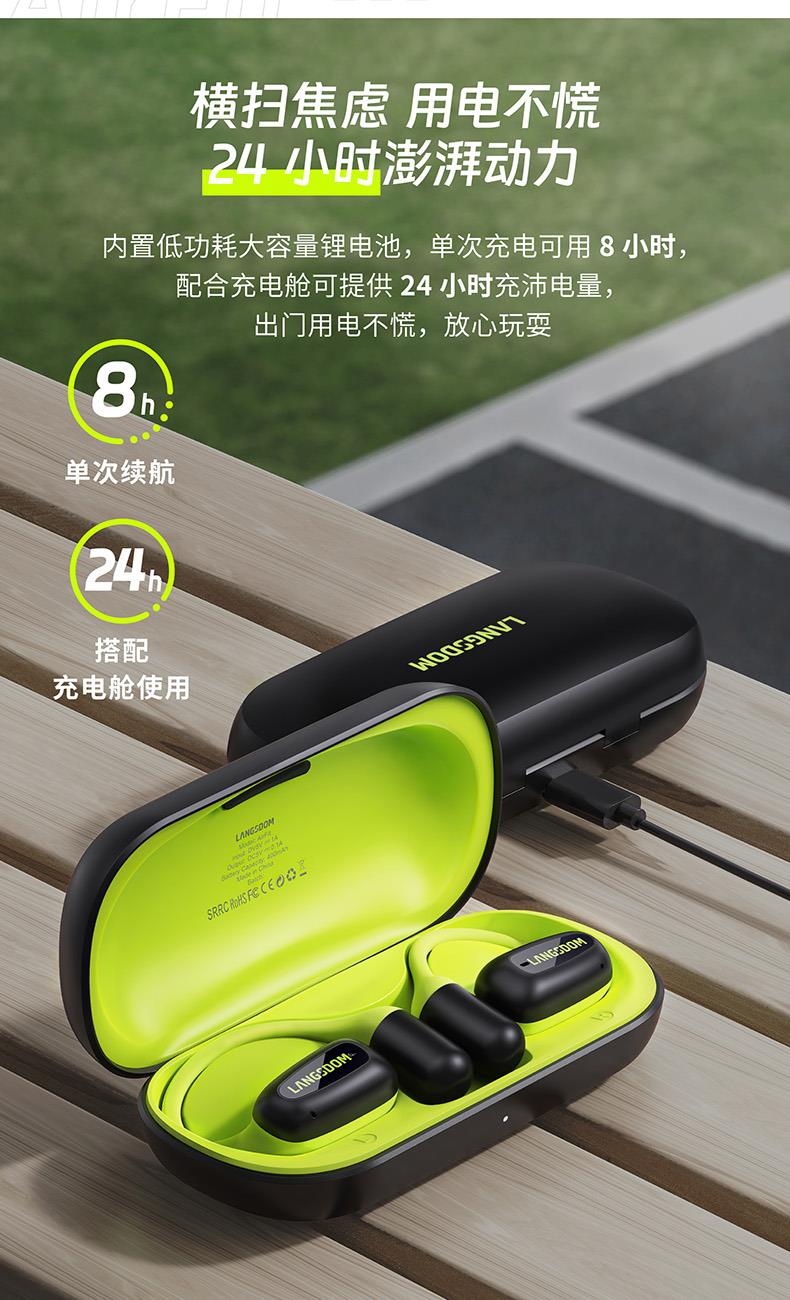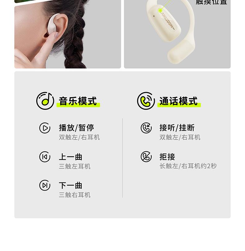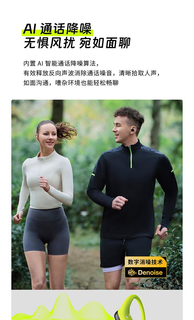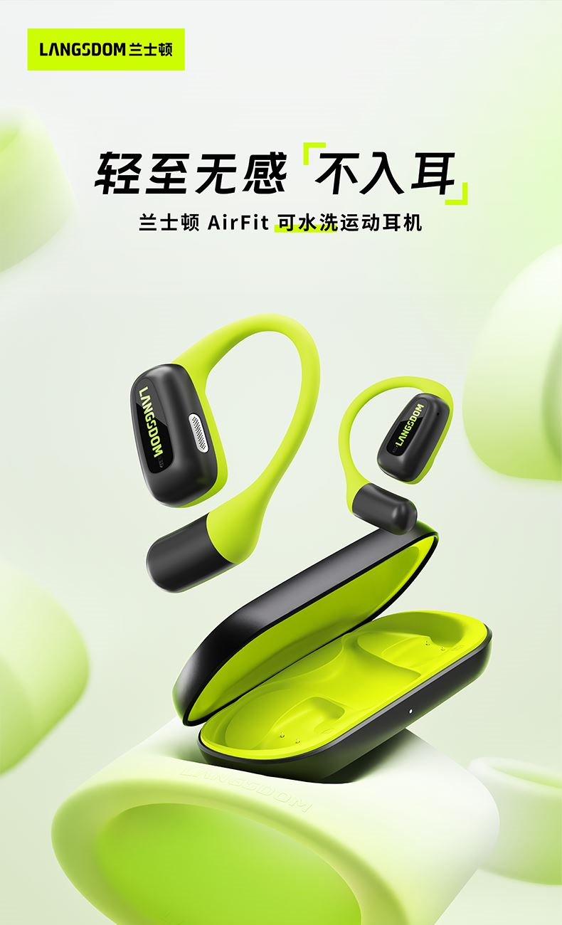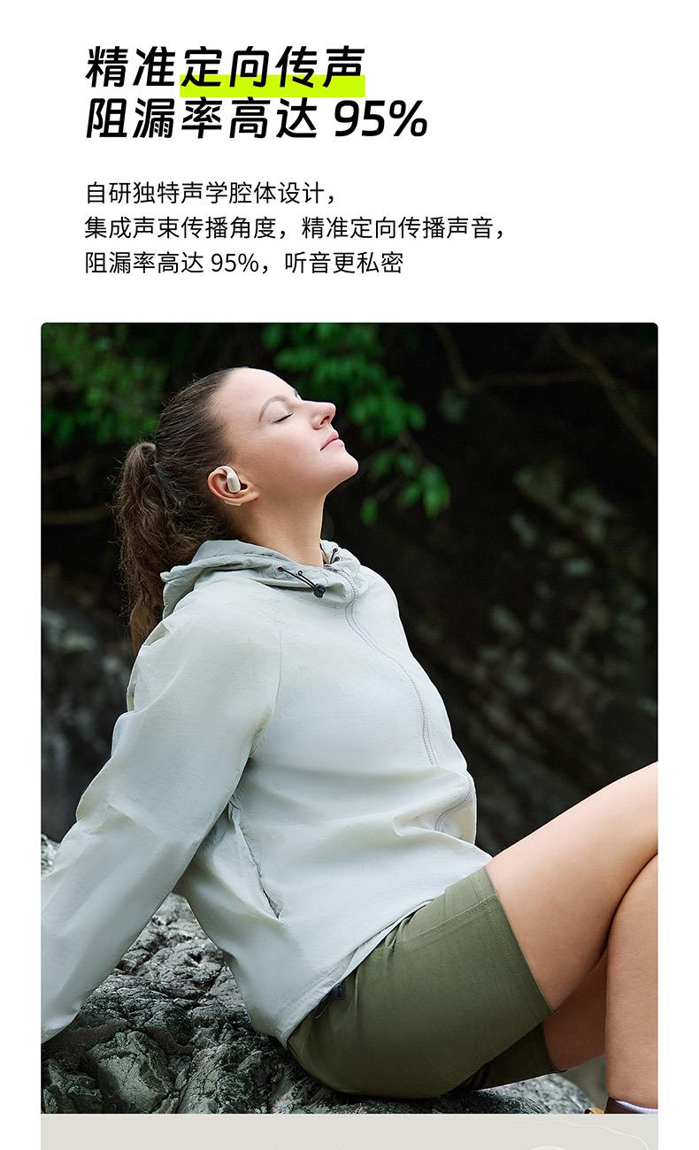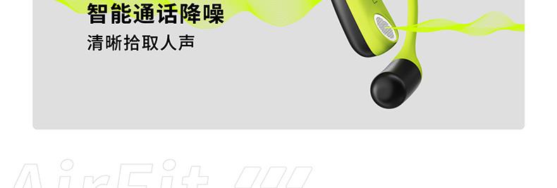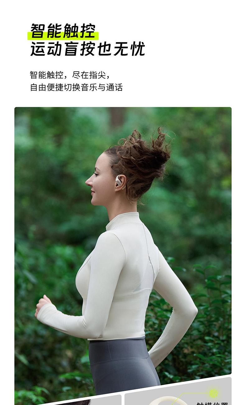 颜色:萤火绿/素雅黑/灵动白 电池容量:55mAh*2/400mAh 包装尺寸:125*200*60mm 外箱尺寸:650*320*435mm 续航时间:24小时 充电时间:2小时 蓝牙版本:V5.4 防水级别:IPX5可水洗 佩戴舒适度高,液态硅胶全天戴 7g超轻,比2张A4纸轻无压迫 仿生海螺结构,低音增强20% IPX5防水可水洗,运动无惧雨汗 AI智能降噪,迎风骑行通话清晰 开放聆听兼环境音,续航24h 2000+运动达人认可旗舰音质