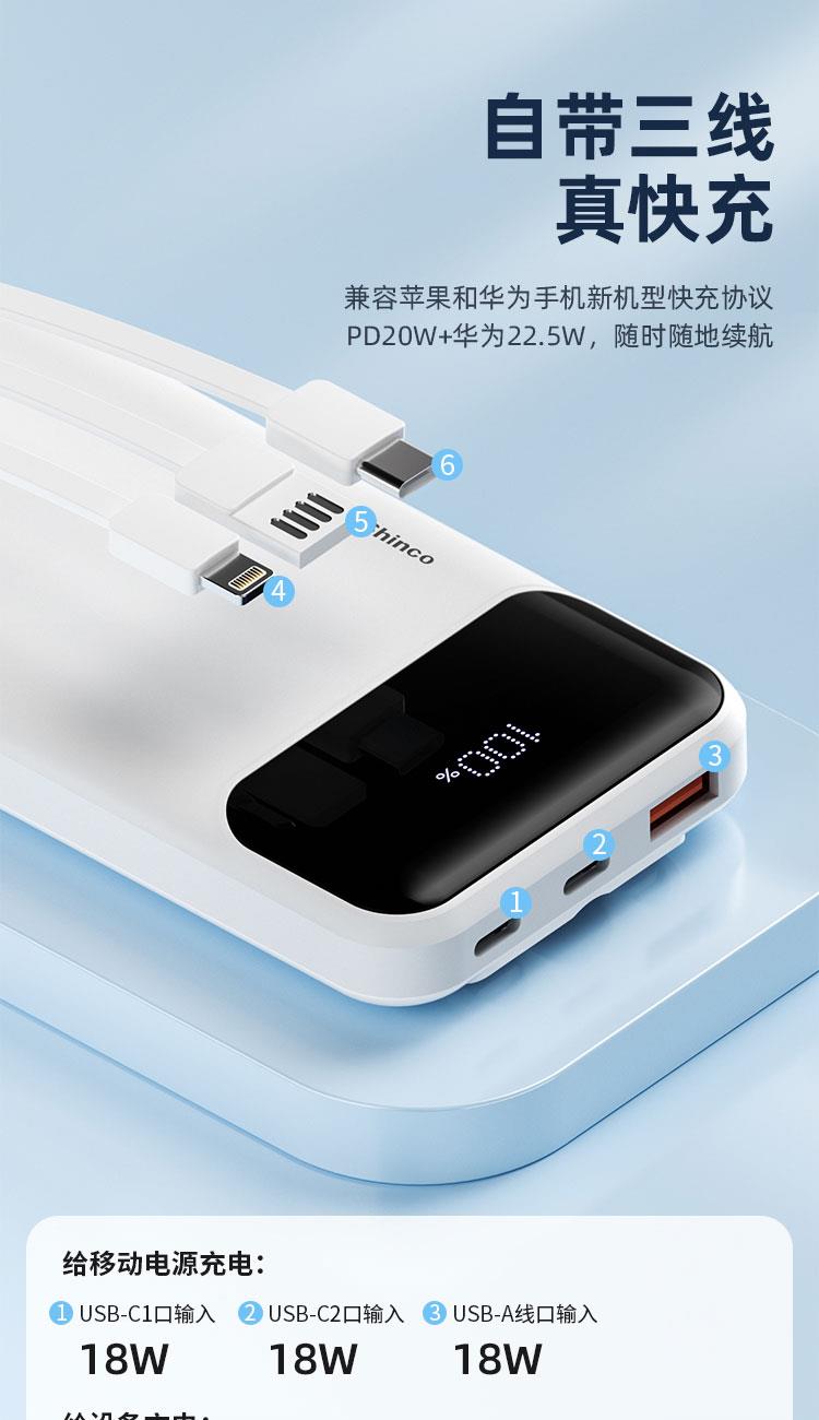 • Shinco新科PD22.5W自带三线超级快充移动电源G1S