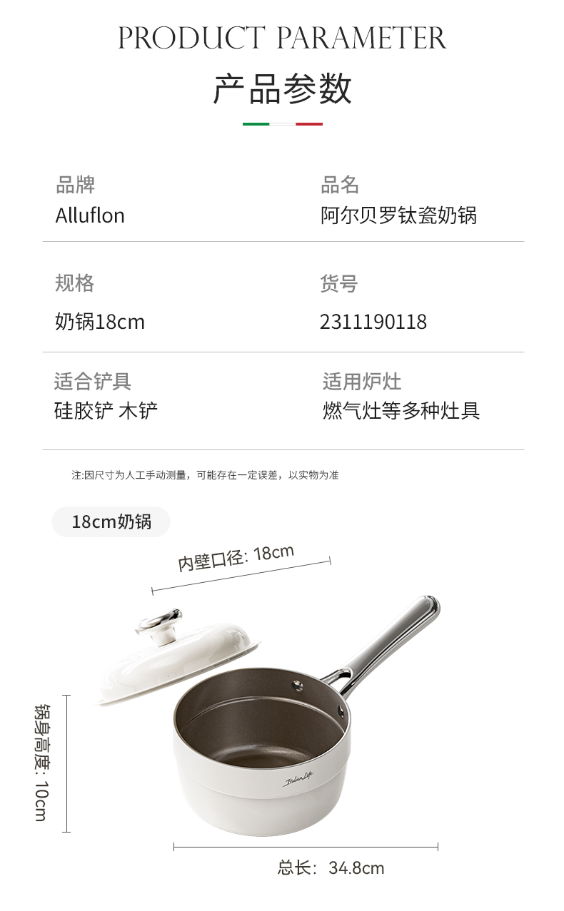 Alluflon阿路弗仑阿尔贝罗钛瓷奶锅18cm