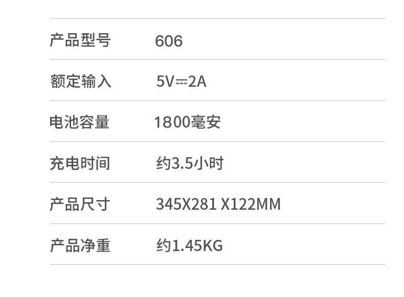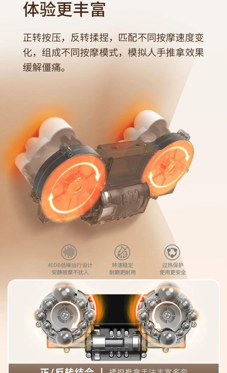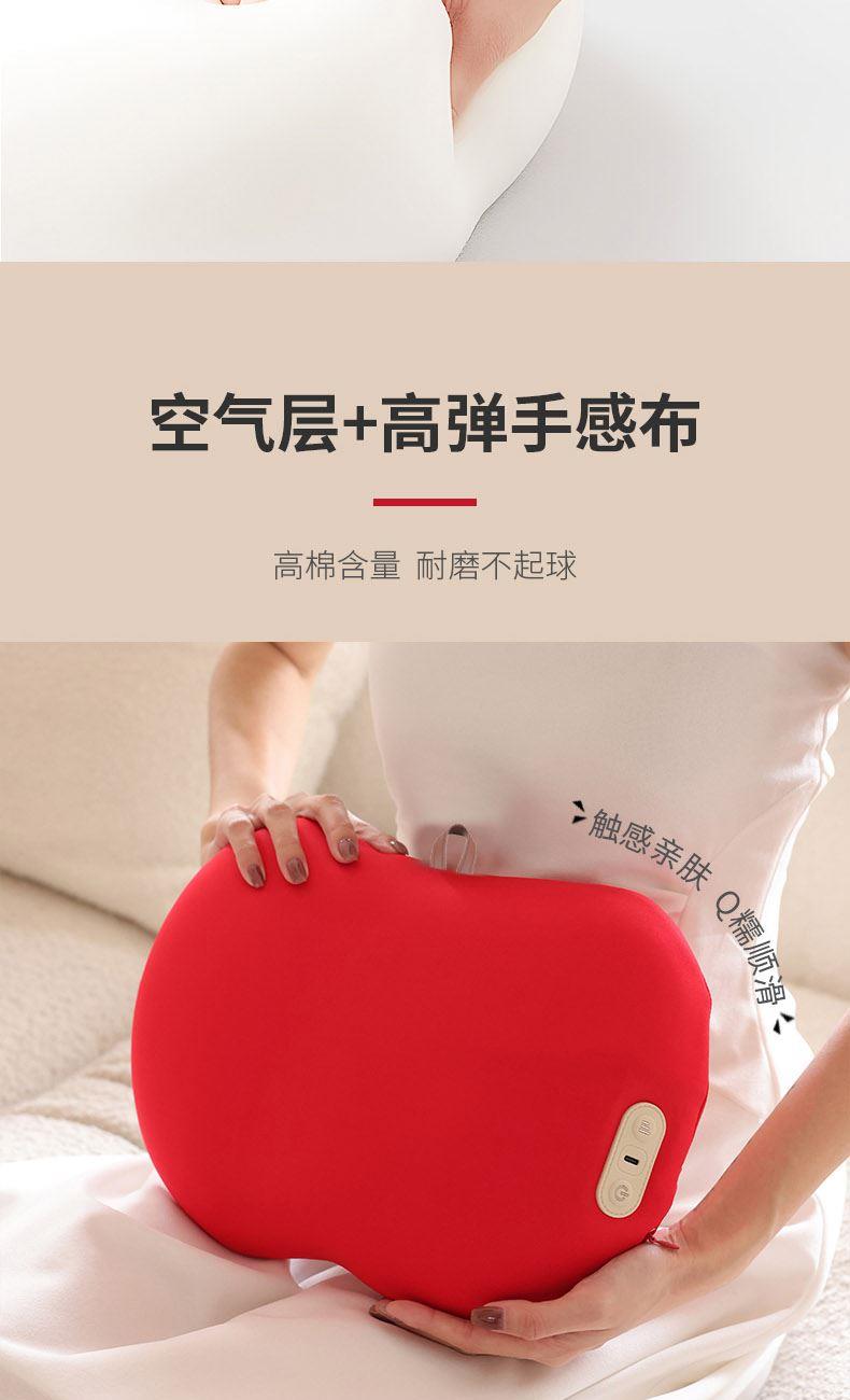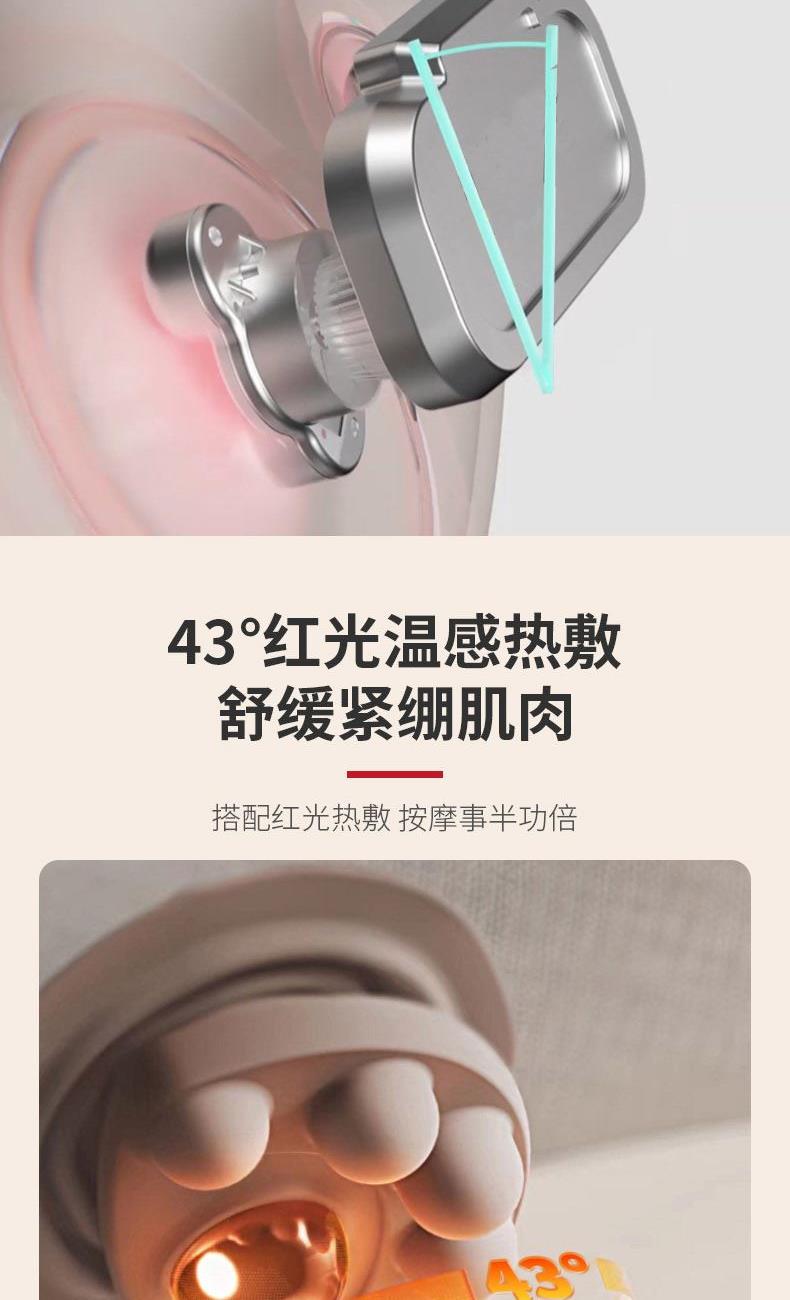 定输入:5V/2A 电池容量:1800毫安 力度挡位:3档 适用部位:颈/腰/背/腹/腿/臀 颜色:红色 蓝色 绿色 产品净重:约1.45KG 充电时间:约3小时 材质:记忆棉+高弹手感布 产品尺寸:345X281 X122MM 按摩体验类(直击痛点,模拟专业手感):15° 机芯倾斜设计,贴合人体生理弧度,直击按摩痛点,正转按压 + 反转揉捏,搭配三档力度,复刻老技师推拿手法,43° 红光温感热敷,深层舒缓酸痛疲劳,加速血液循环,全身多部位适配:腰 / 颈 / 肩 / 背 / 腿,一台满足全家需求,90KG 大承重,强劲顶揉不塌陷,按摩更到位