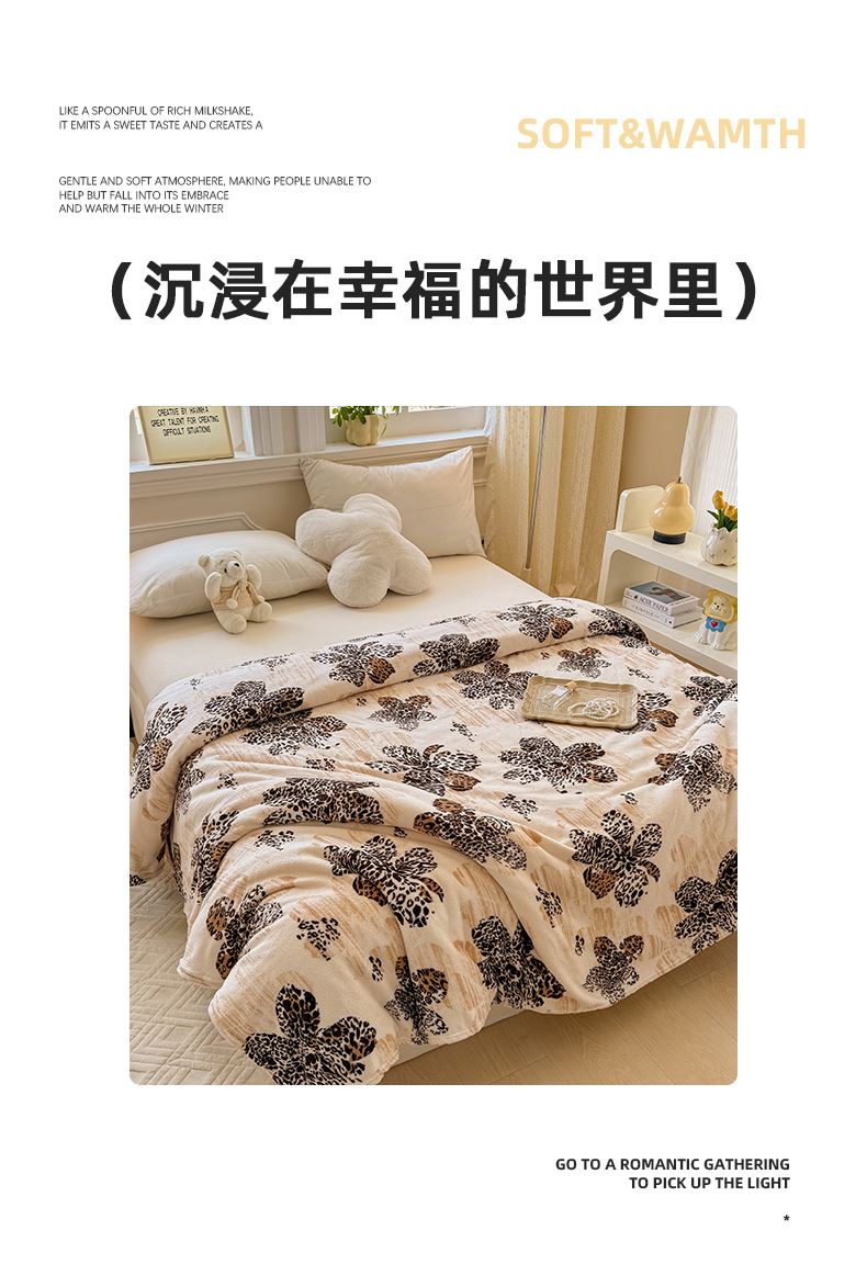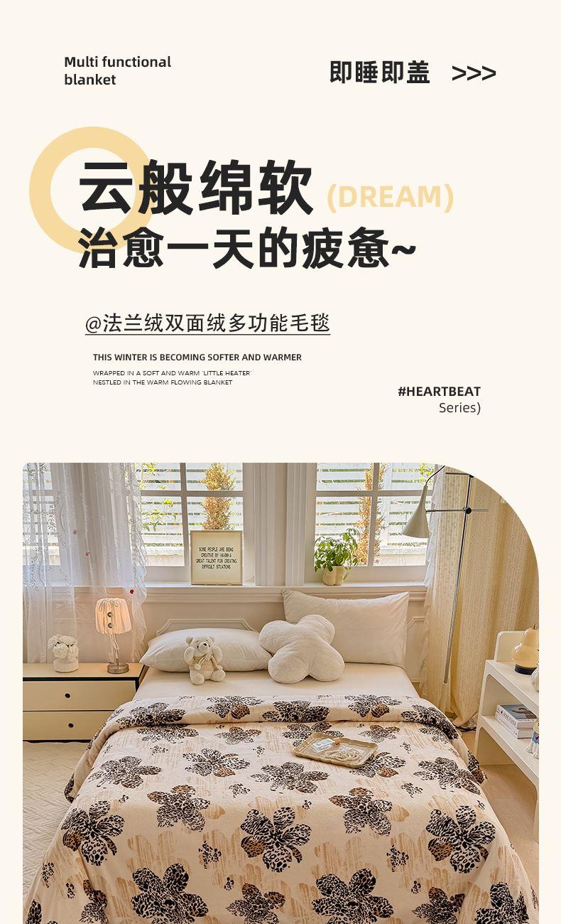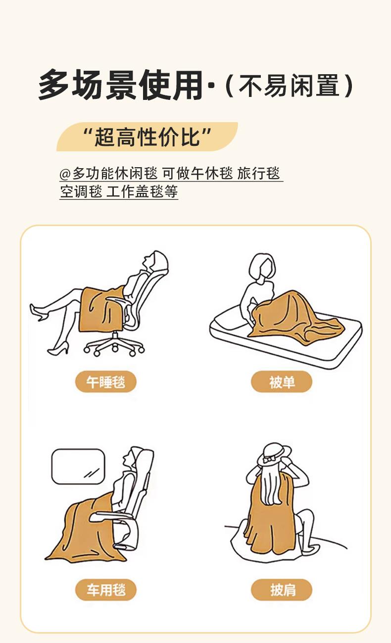 1:多功能休闲毯可做午休毯旅行毯空调毯工作盖毯等 2:一毯多用成就心尖上的美好 尺寸:180*200cm 包装:彩盒