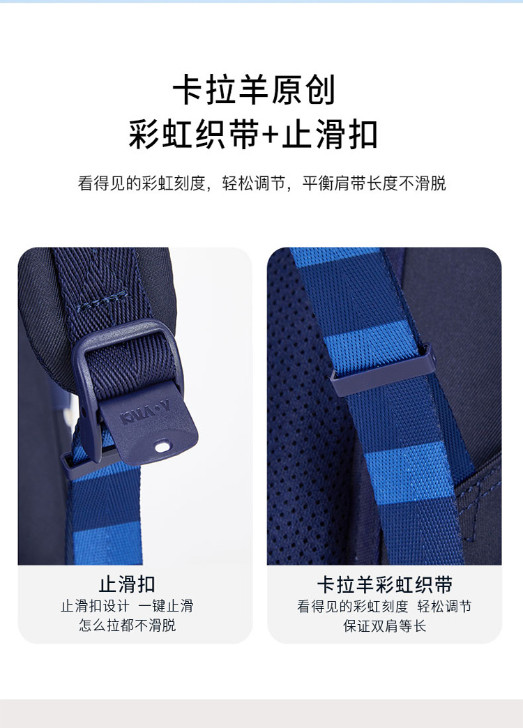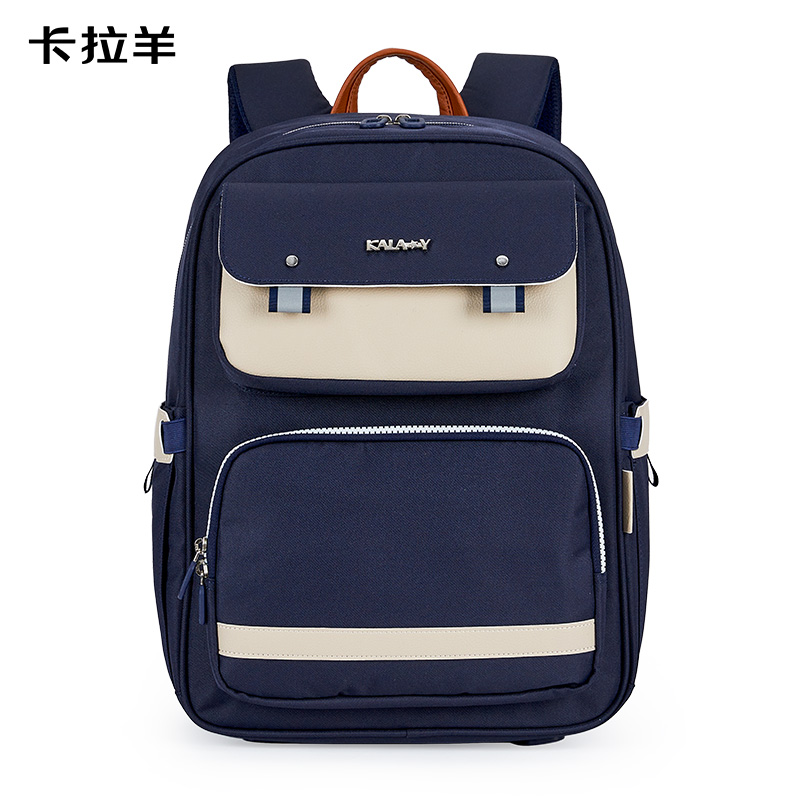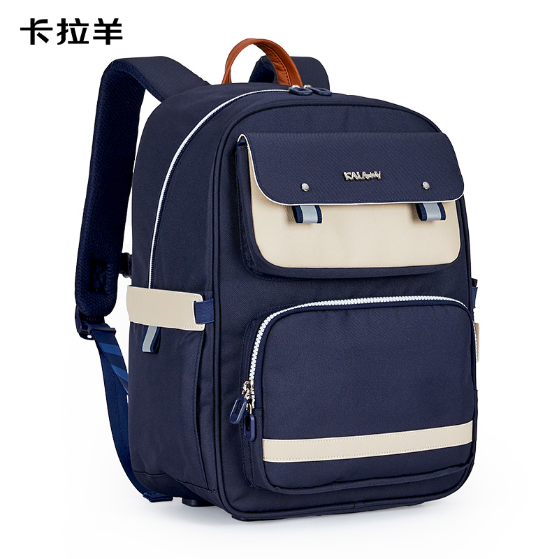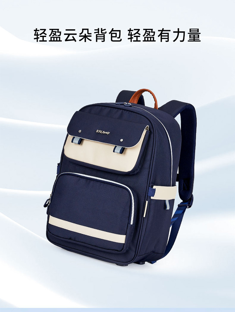 卡拉羊减负护脊超轻云朵书包初中生TX2625-1藏青