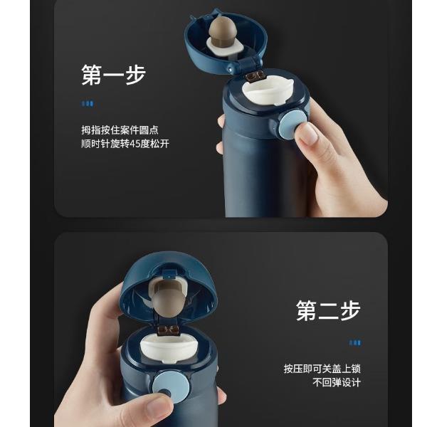 开盖特点:磁力自锁 颜 色:RD宝石红/BL午夜蓝/BK石墨黑 容 量:500ml 保温效力:68C以上(6小时) 保冷效力:10C以下(6小时) 外管材质:304不锈钢 内管材质:316L不锈钢 密封圈:食品级硅胶 饮口:食品级PP 包装:礼盒装