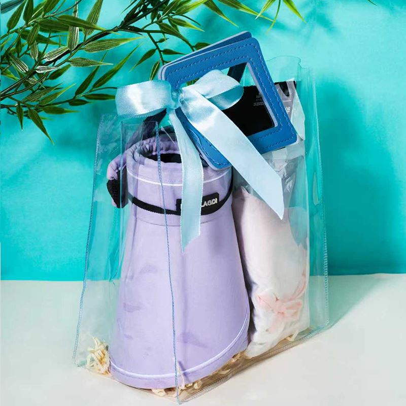 1、PVC加厚手拎袋,透明度高,一眼看到内部产品配置, 2、养儿不防老,防晒才防老,物理防晒三件套,人人需要的防晒好礼,安全感拉满! 3、遮阳帽檐大遮脸颈,显小百搭;冰袖冰丝凉感不闷汗,贴合不滑落;防晒口罩全包裹,冰丝凉感不闷热。 4、同色系搭配套装,精致又实用,可根据客户需求选配爱你老几/端午安康主题贺卡,满满的仪式感和情绪价值。