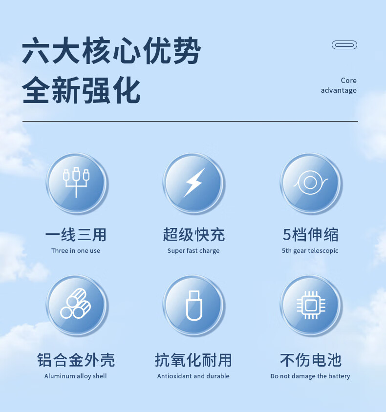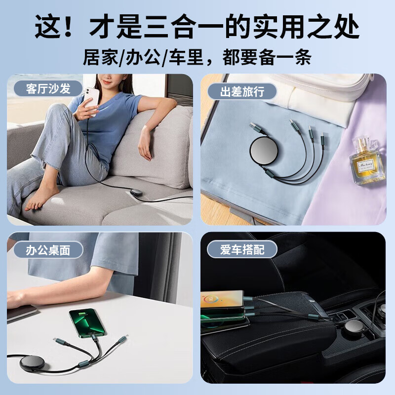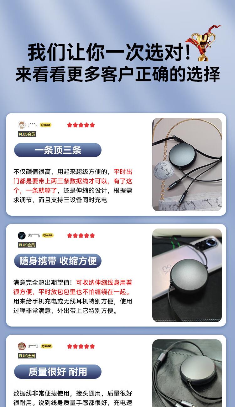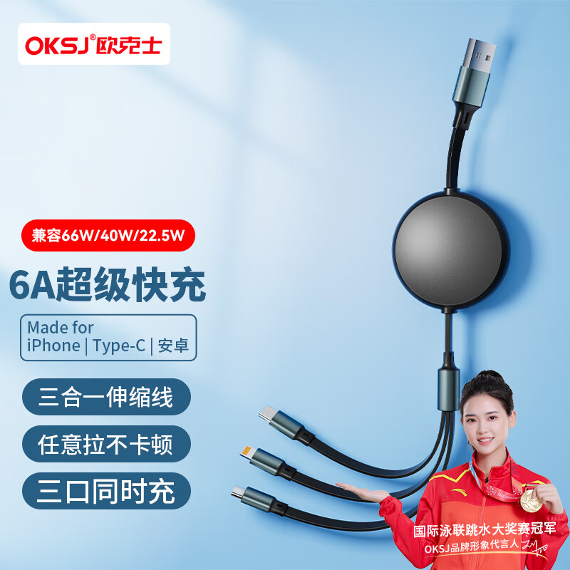 OKSJ-快充伸缩一拖三数据线京东自营销量100万+