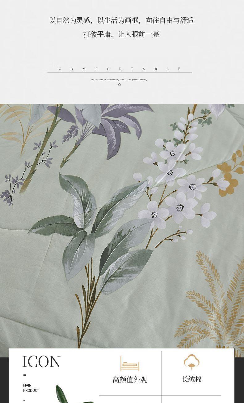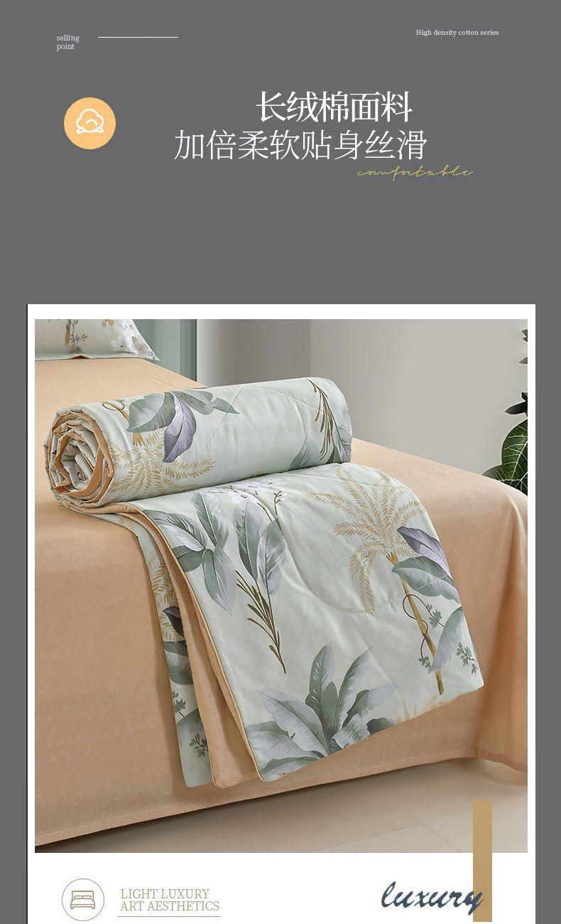 1.臻选纯棉面料,印染工艺采用活性印染工艺,不起球,不褪色,极具柔软性,在纺纱过程中,增加了精致梳理的程序,疏去软短的纤维,剔除棉花种的杂质,以制造出平滑的纱线,让棉花更有韧性,使人干到柔软。2.纯棉纤维具有良好的保湿型,透气性能好,使用感觉温暖。3.多用套件,可盖可套,简约设计,使得毯子更显档次,更显时尚。精致的包边工艺,做工精细,针脚细密,不易脱线,牢固耐用。