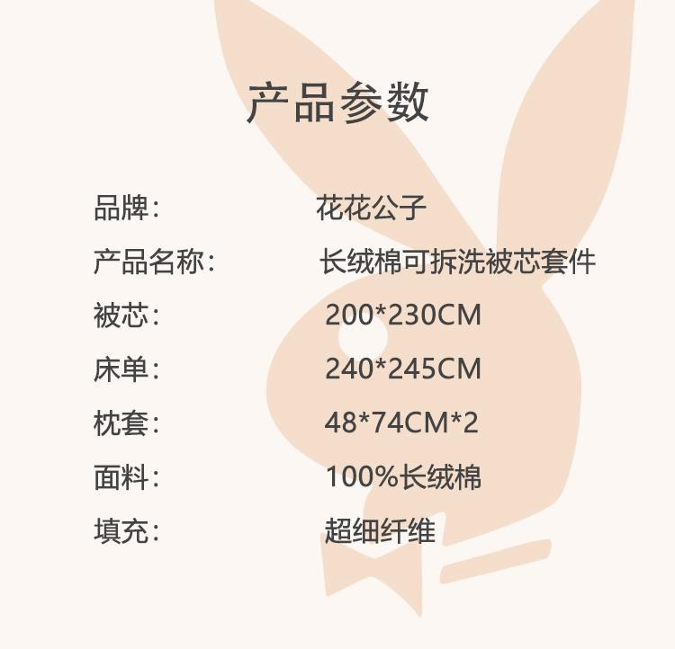 花花公子长绒棉可拆洗被芯套件PB-25T7805