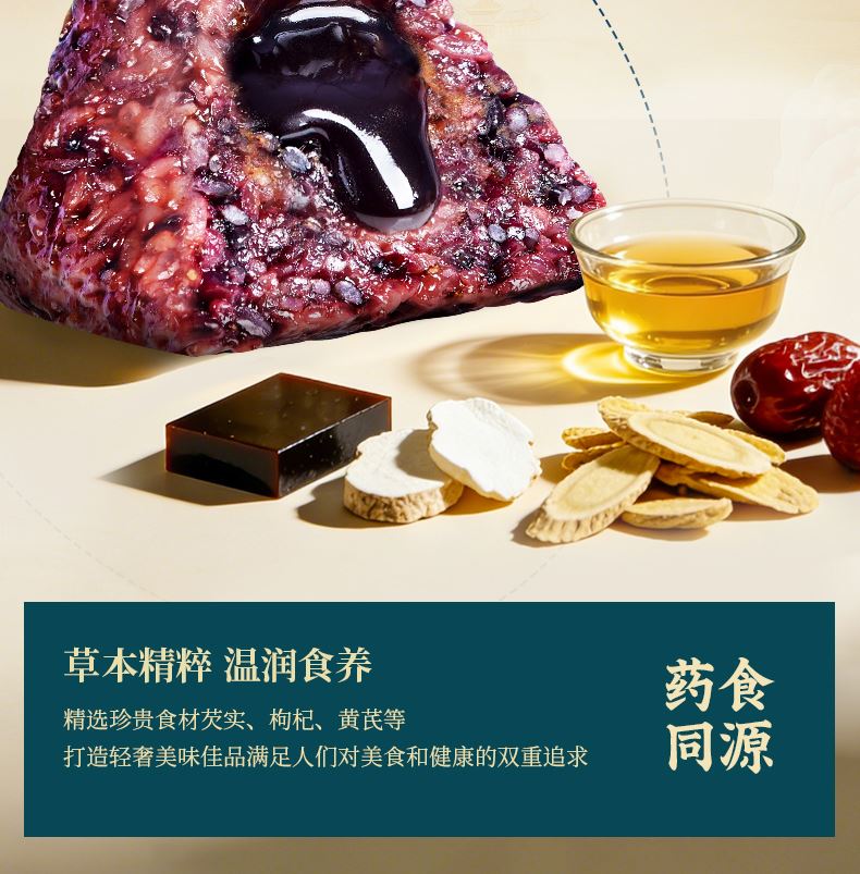 120g人参鸡肉爆汁粽*1 120g东坡肉爆汁粽*1 100g经典鲜肉粽*1 105g奇亚籽腰果巧克力流心粽*1 105g五黑流心粽*2 105g藜麦黄米流心粽*2 100g夏威夷果仁豆沙薏米粽*1 100g香糯紫薯粽*1 60g海鸭蛋*2