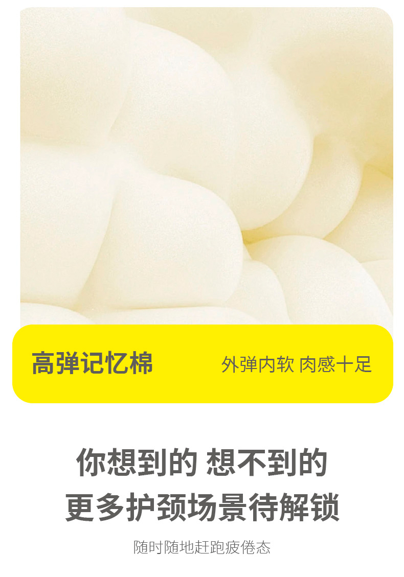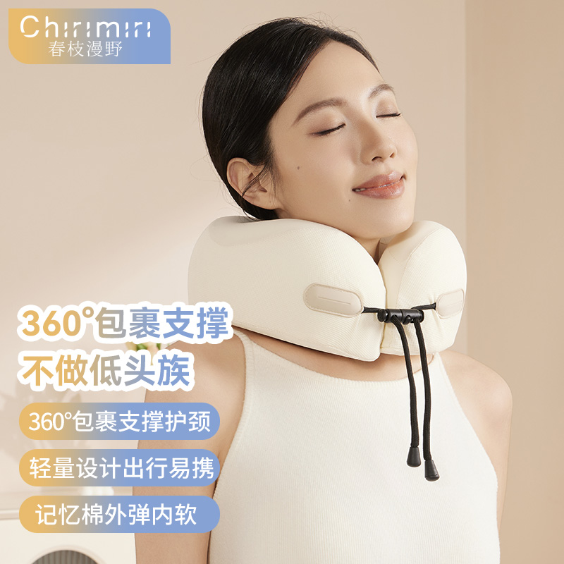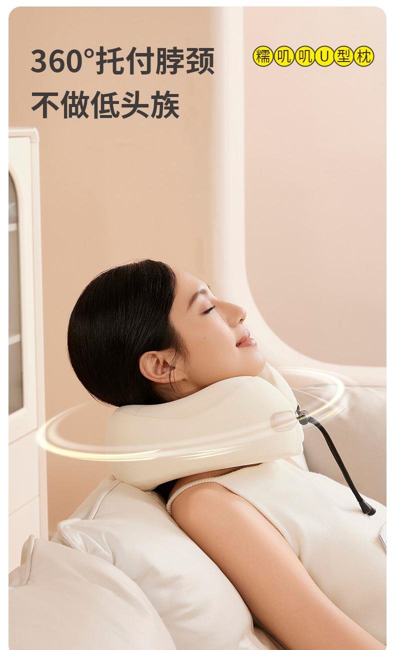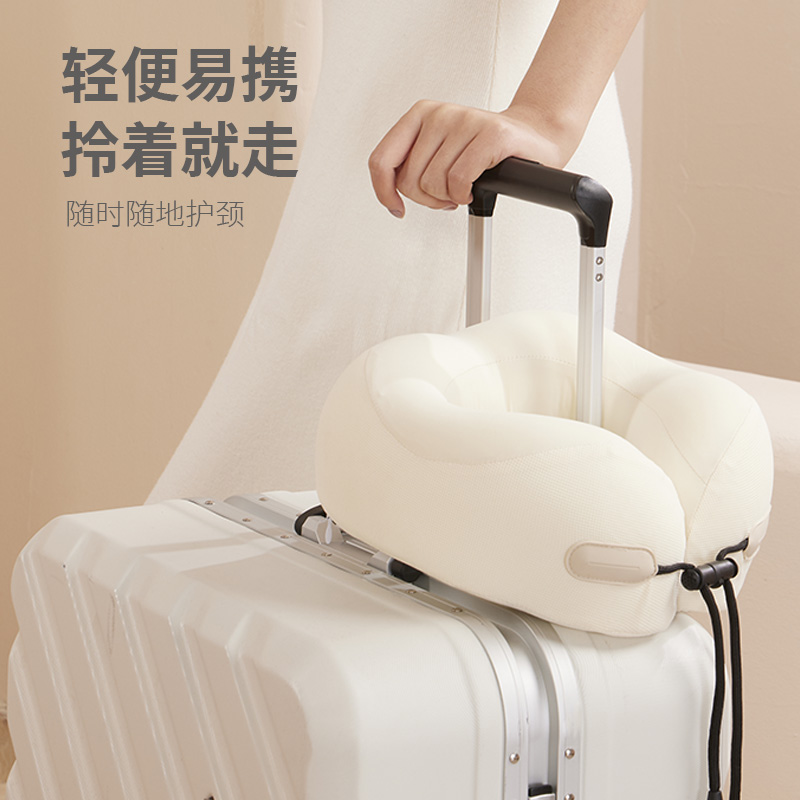 糯叽叽U型枕 型号:UF-1 外圈:涤纶 枕芯:记忆棉 净重:0.35kg 执行标准:GB 18401-2010-B 类 内圈:87%锦纶 13%氨纶 尺寸:25*25*13cm 颜色:象牙白 风信紫 护颈内核,9小时+旅行不累 双内核技术,内芯护颈,外芯舒缓压力 360°包裹减压,前后左右承托头部 透气面料,凉感舒适
