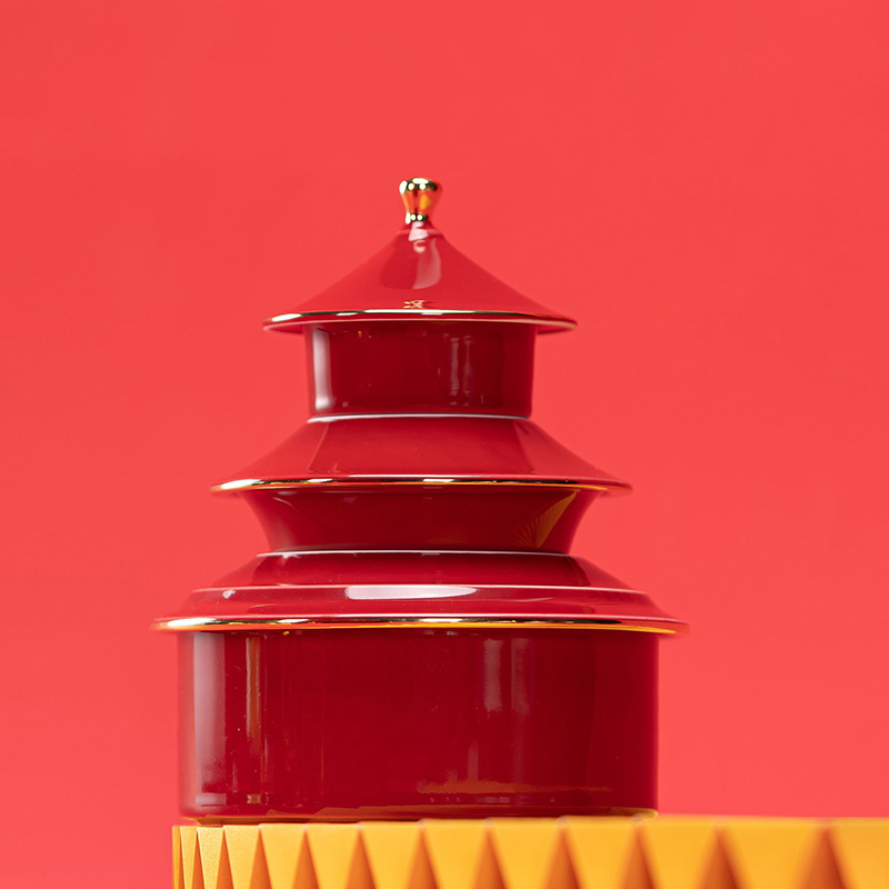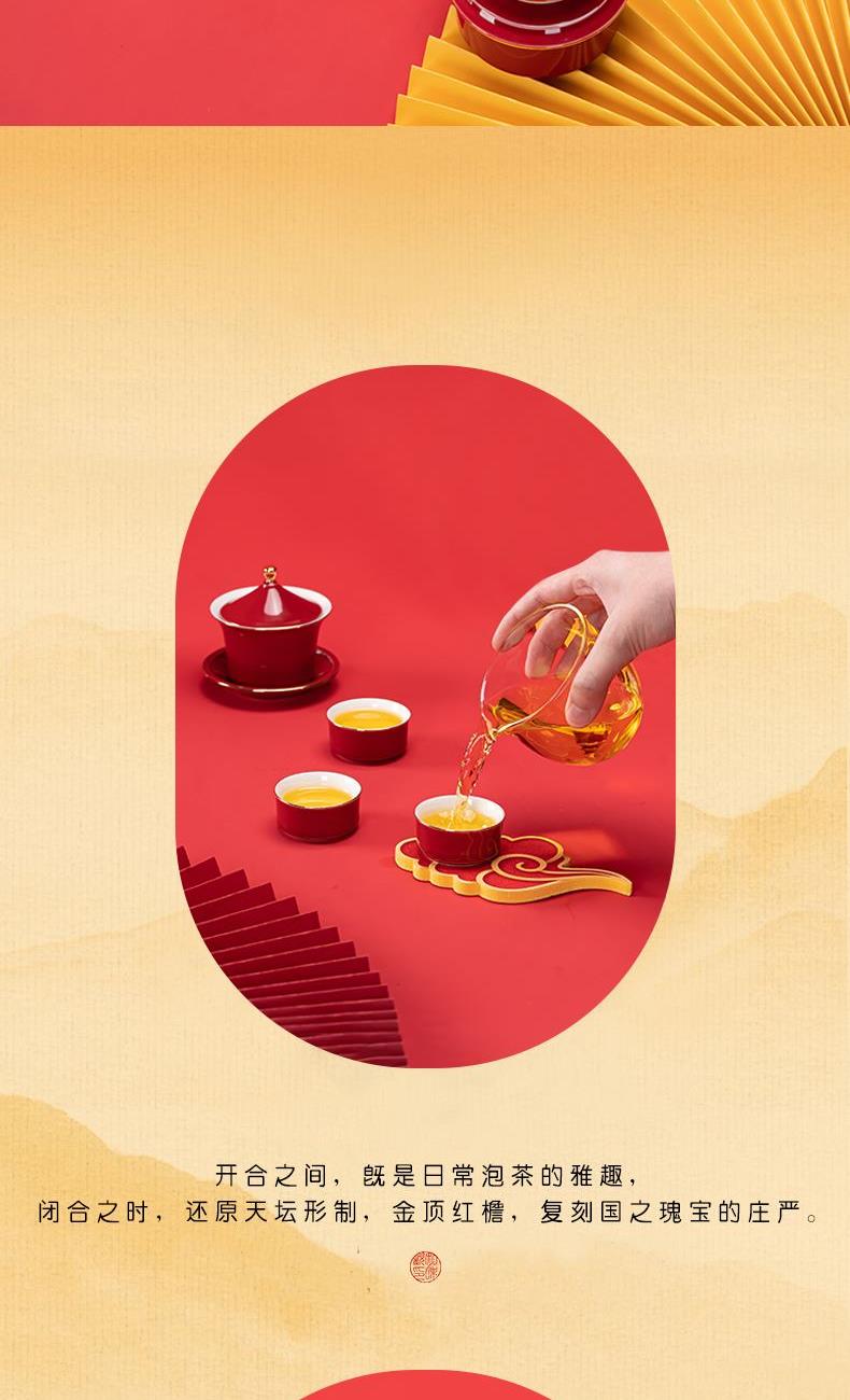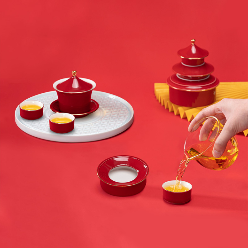 1.以天坛祈年殿为形,融东方建筑美学与茶器功能于一体,开合之间,既是日常泡茶的雅趣,闭合之时,还原天坛祈年的形制,金顶红檐,复刻国之瑰宝的庄严雅致。