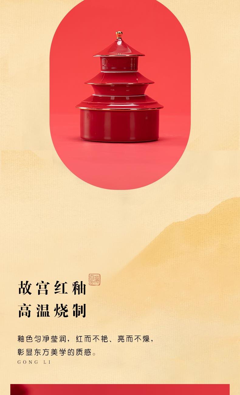 3.甄选高纯度故宫红釉,经1300°高温窑变淬炼,釉色匀净莹润,红而不艳、亮而不燥,彰显东方美学的质感。