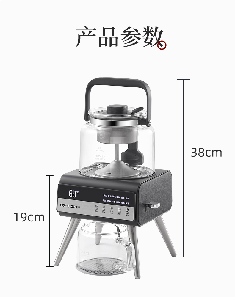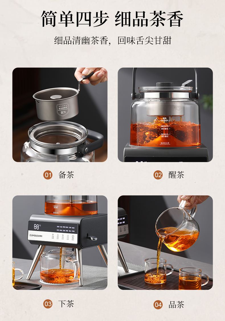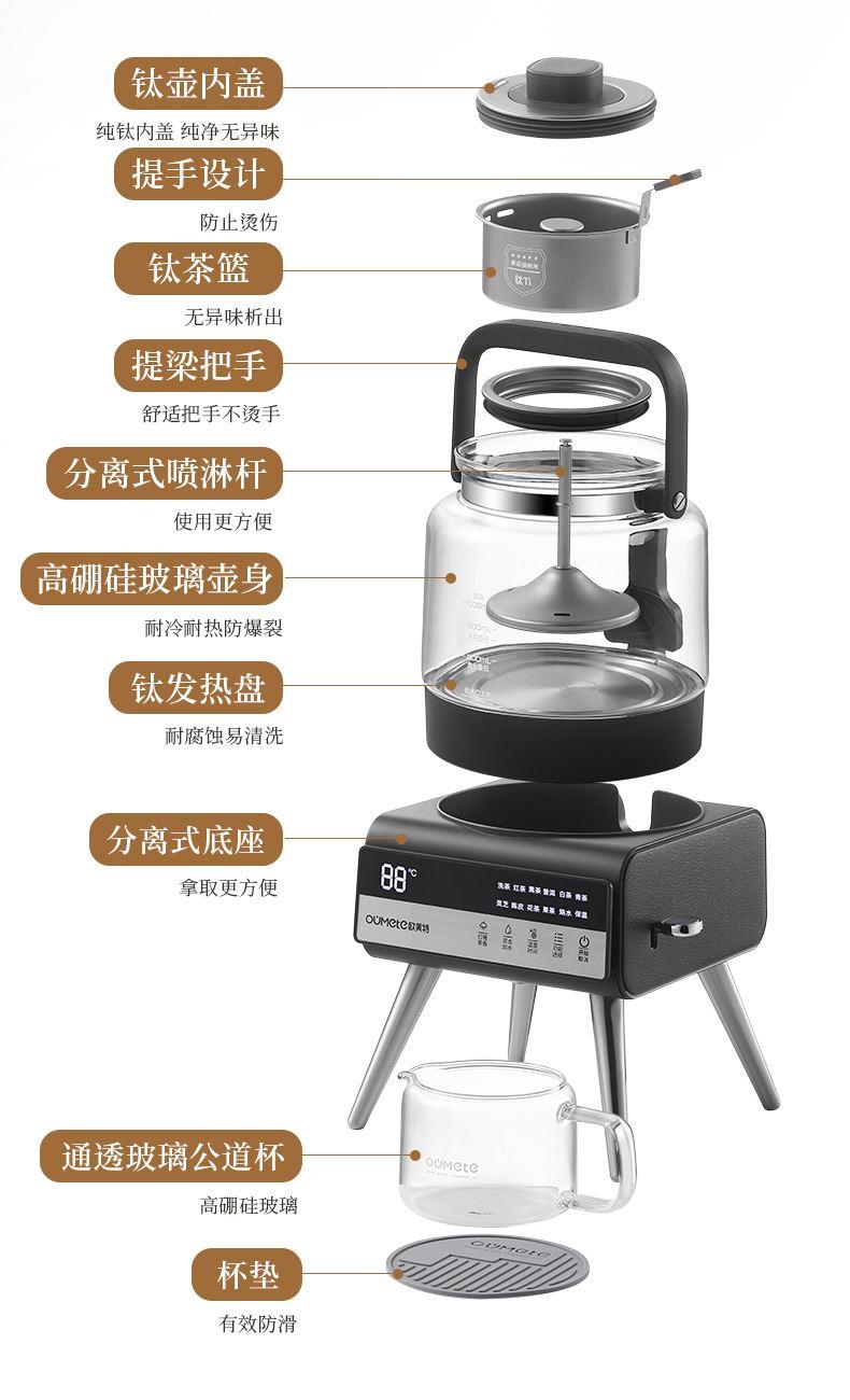 欧美特T8纯钛智能煮茶器玻璃花茶壶大容量办公室