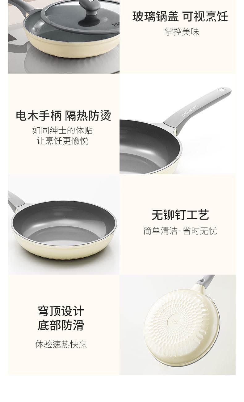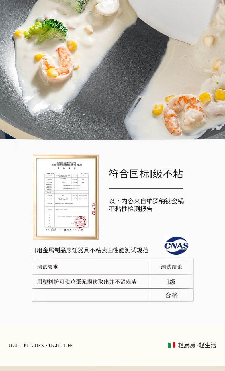 规格:28cm 材质:铝合金+陶瓷 单个尺寸:525*355*105 1、国标1级不粘,钛不粘不糊底 2、钛瓷革新材质,婴童级接触用 3、1.5kpa微压锅盖,省时入味健康 4、底部穹顶意式设计,时尚又节能 5、可进洗碗机,释放懒人天性。