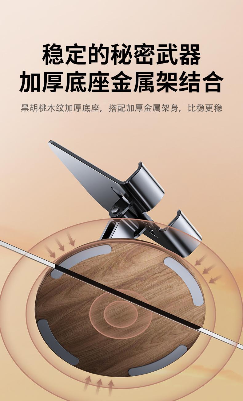 产品材质:胡桃木,金属 产品尺寸:150*96mm 净重:143g 胡桃木与金属相结合,更显质感;可360度旋转;可折叠/收纳;转动自带“滴滴”“解压声