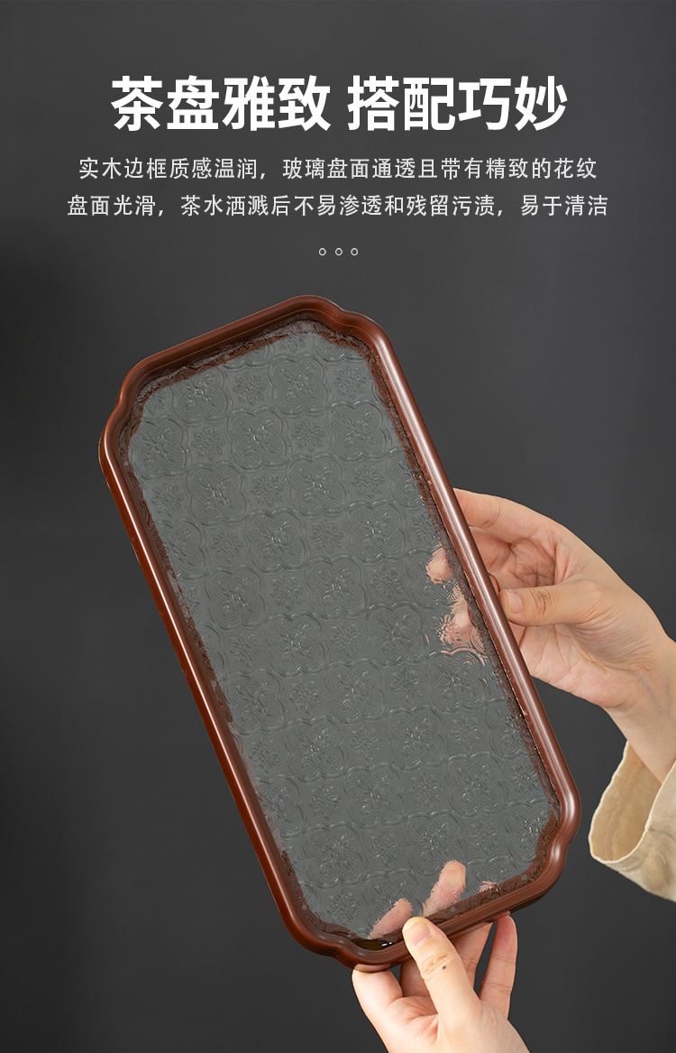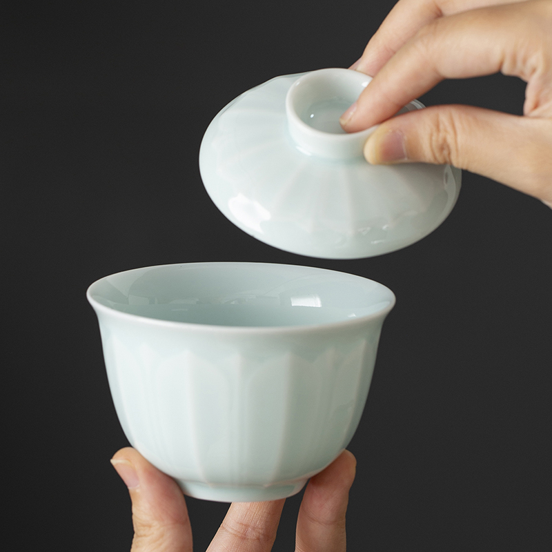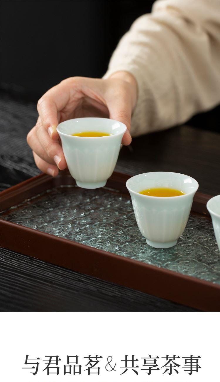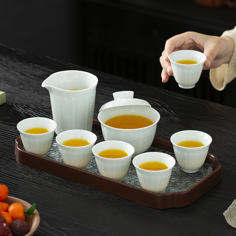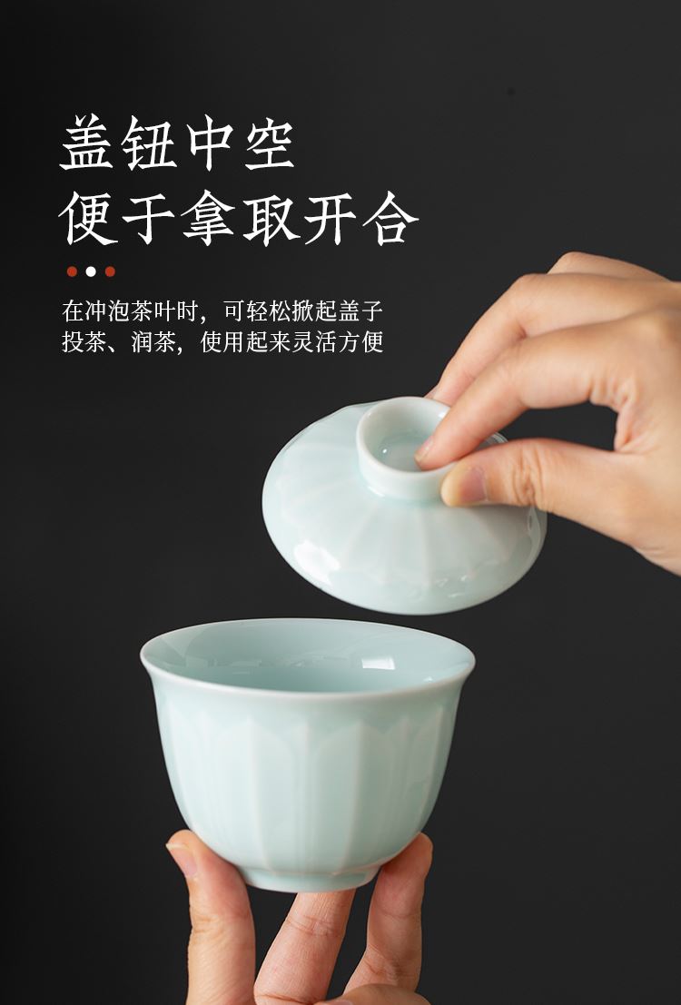 云博陶瓷影青莲花并蒂皮盒旅行茶具套装盖碗款玻璃茶盘商务礼品