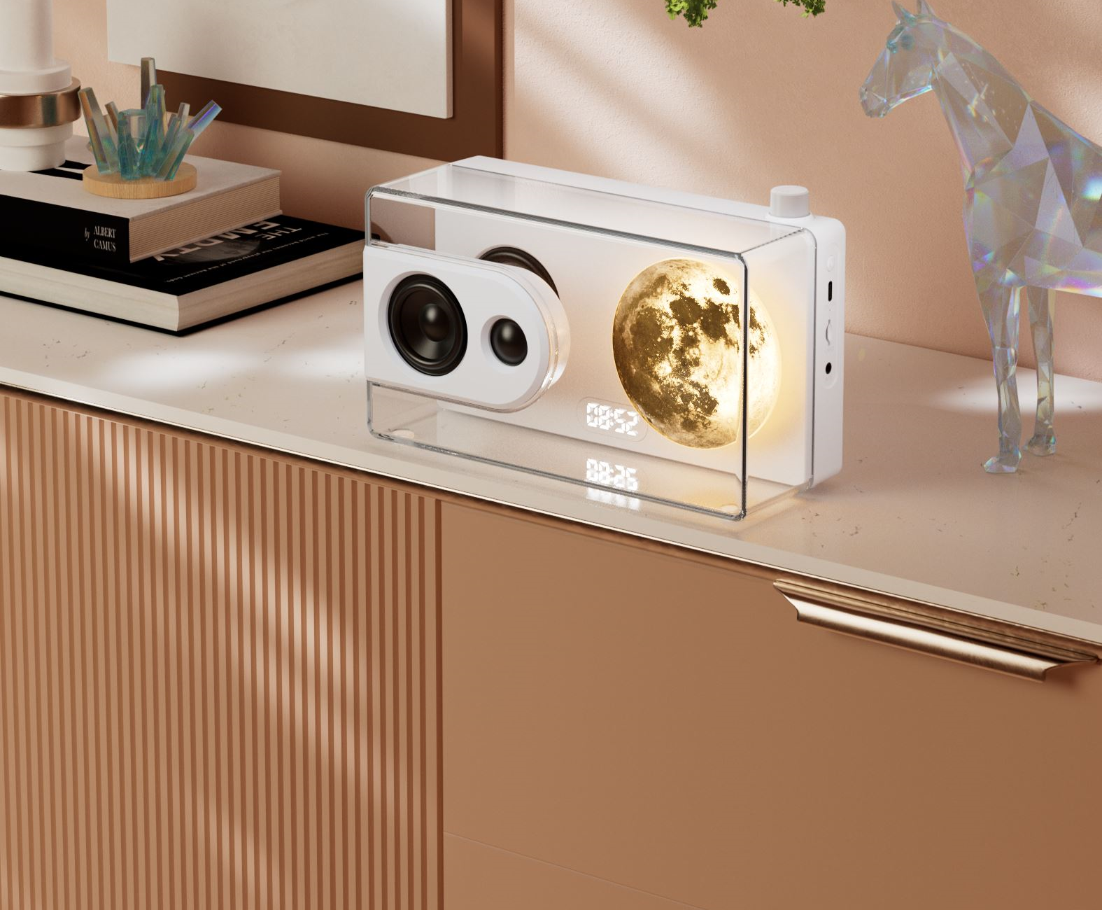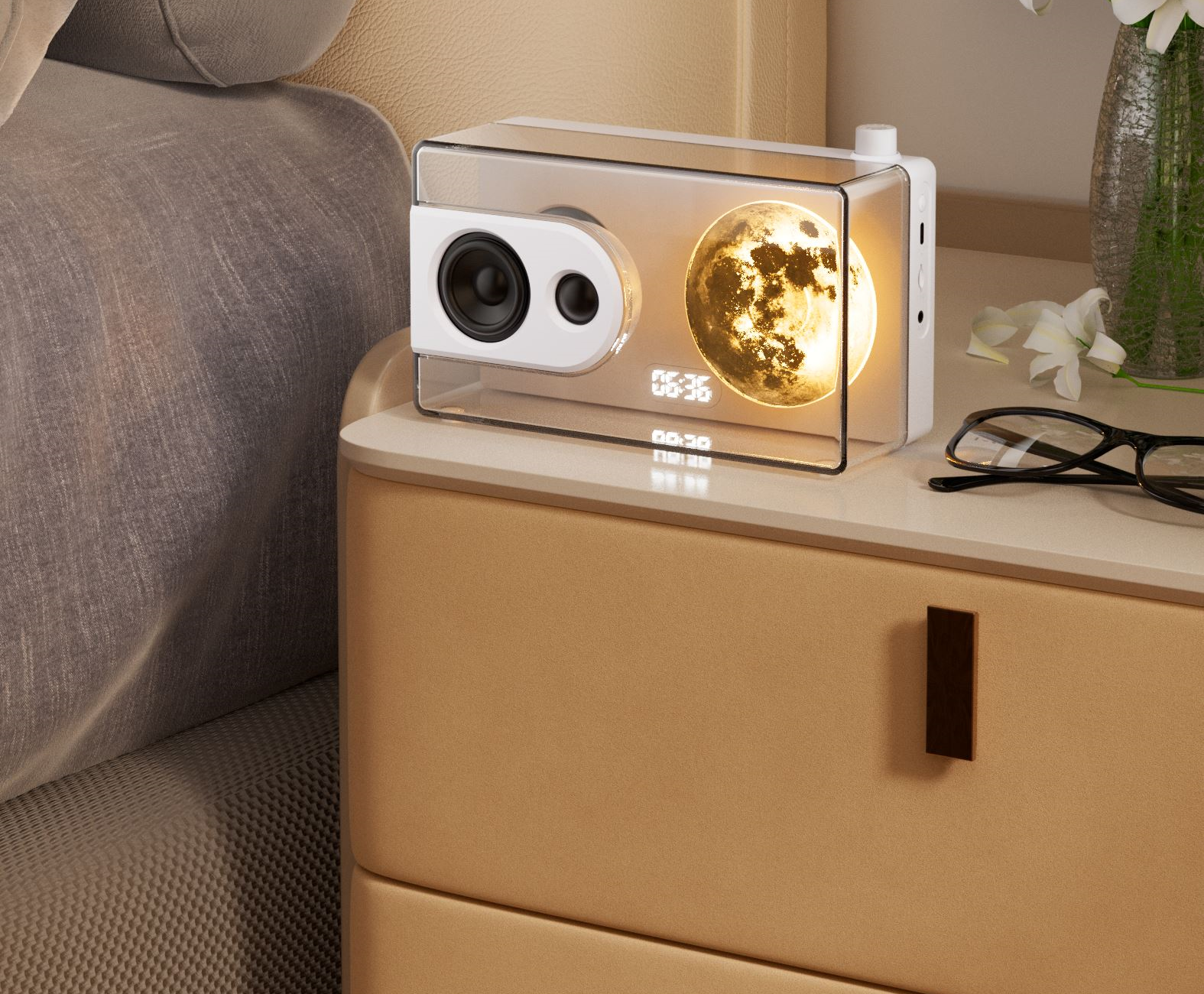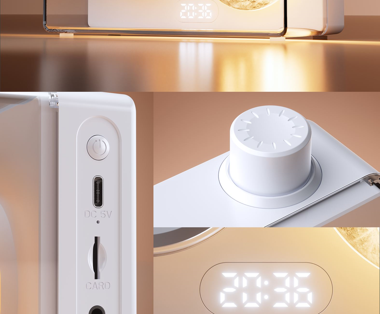 支持蓝牙播放,白噪音,TF卡播放,电脑连接AUX播放,时间显示,闹钟定义,TWS对连。