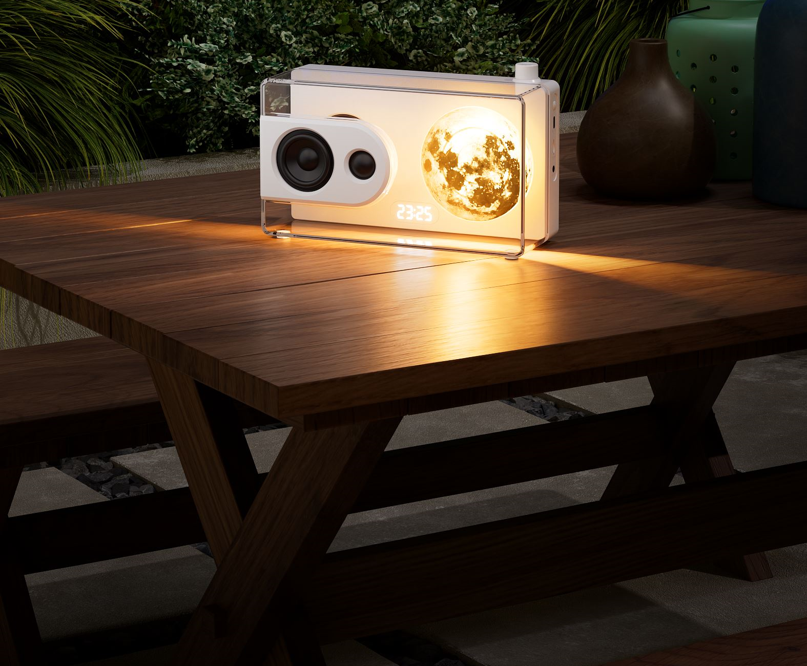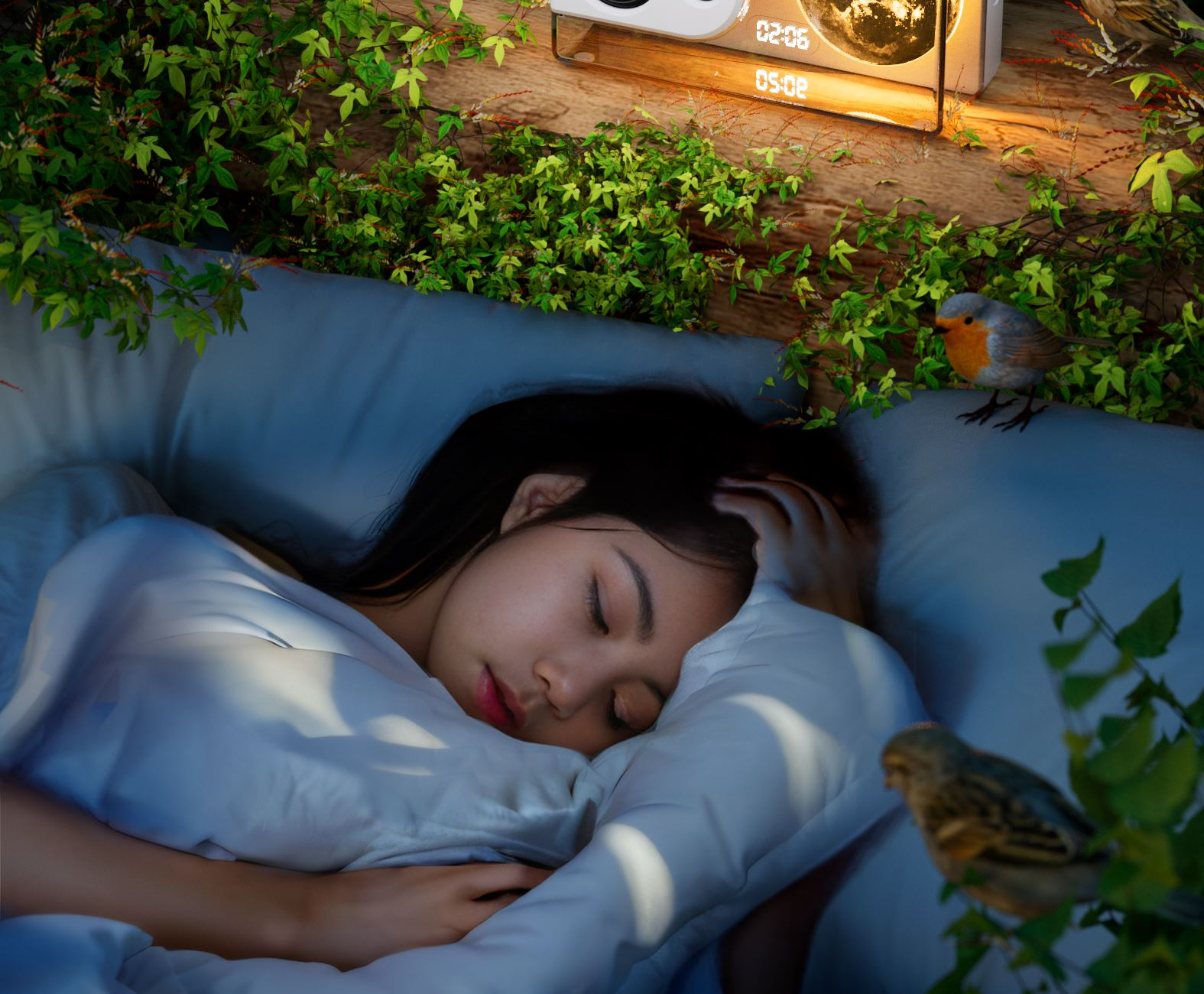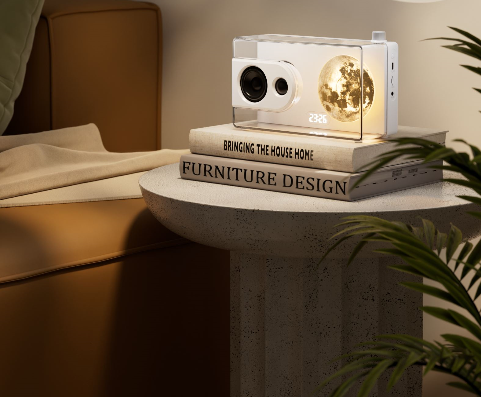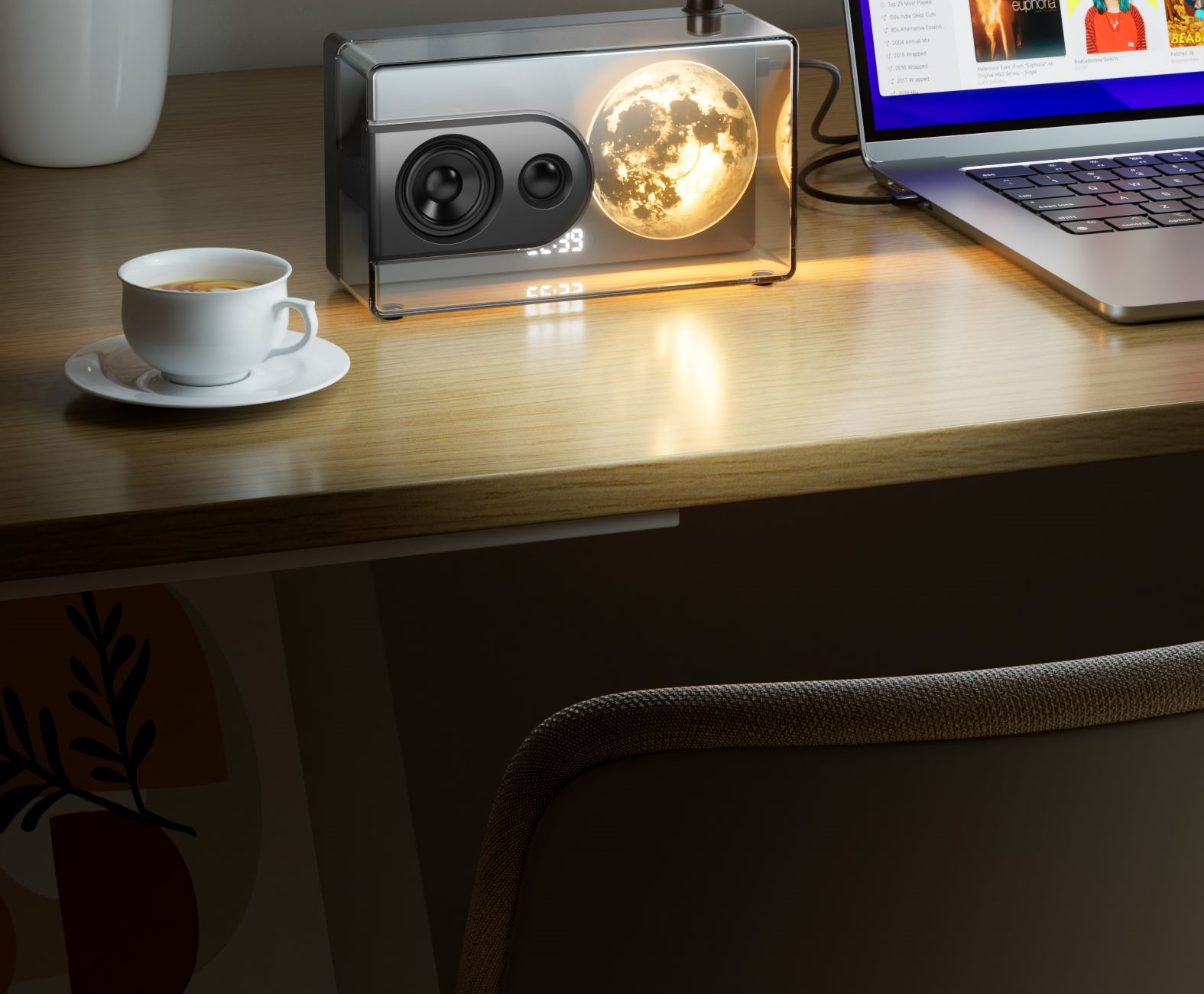 支持蓝牙播放,白噪音,TF卡播放,电脑连接AUX播放,时间显示,闹钟定义,TWS对连。