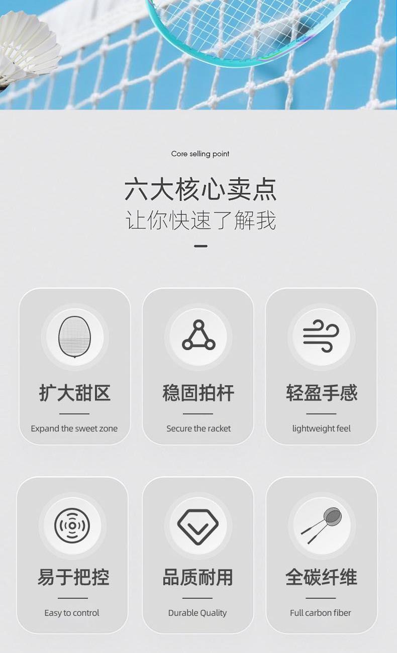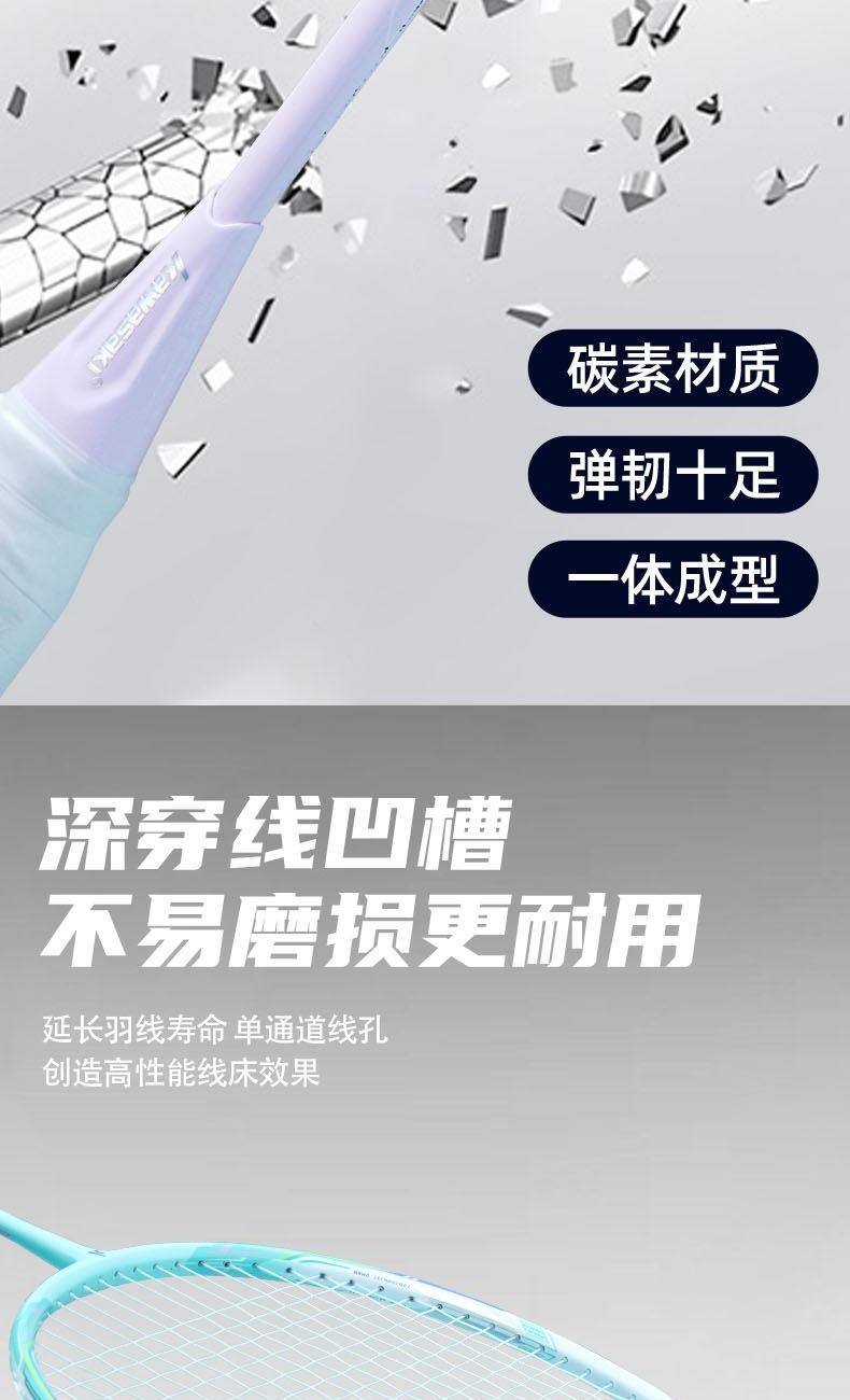 球拍长度:675+1MM 球拍重量:78+2g 拍柄尺寸:G6 承受磅数:18-30LBS 产品净重:0.38kg 产品毛重:0.45kg 平衡点:298±mm 拍框材质:碳素纤维 材质:碳素纤维 中杆硬度:适中 产品尺寸:71*2*23cm 包装尺寸:75cm*7cm*27cm 1.碳素纤维材质拍框,轻盈便捷 2.平衡点适中,从容接球,攻守兼备 3.立体破风框,减小风阻的 4.一体成型中框,强韧有力 5.反应速度快,打感更轻弹