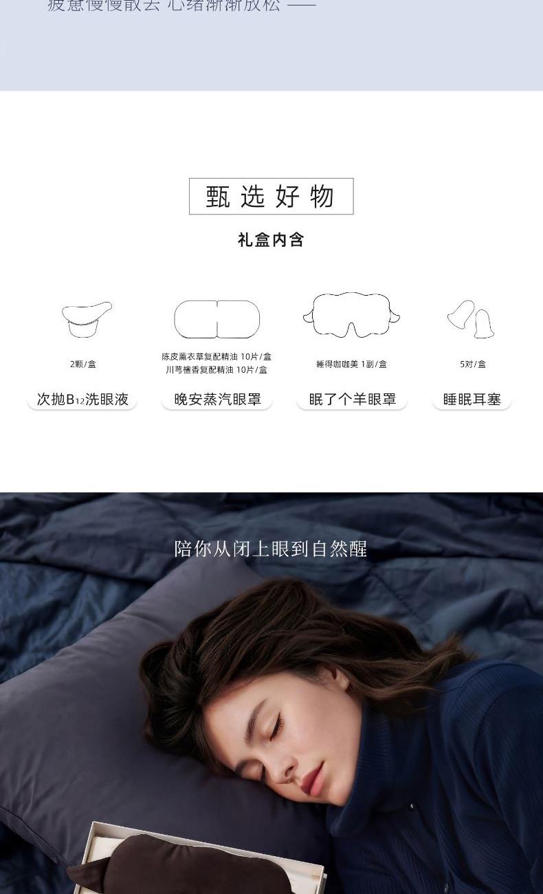 晚安蒸汽眼罩 10片/盒*2 眠了个羊睡眠眼罩1副/盒*1 睡眠耳塞5对/盒*1 次抛B12洗眼液 10mLx2PCS*1