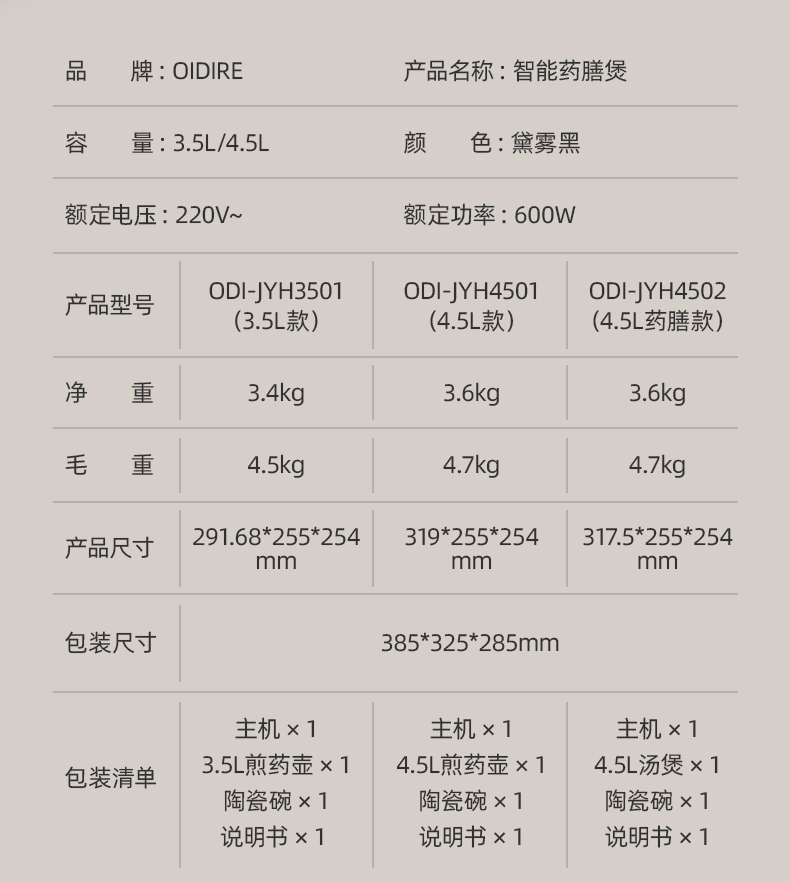 OIDIRE智能药膳煲3.5L药壶款ODI-JYH3501