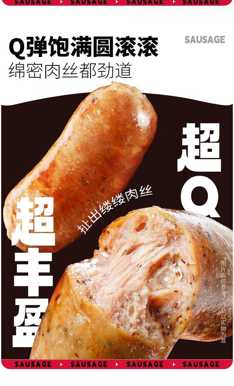 高肉含量,品质扎实:主打 “80 醇肉肠”,意味着肉含量不低于 80%,拒绝过多淀粉填充,肉质紧实弹嫩,咬下满口肉香,带来纯粹的肉肠风味,满足对优质肉肠的品质需求。