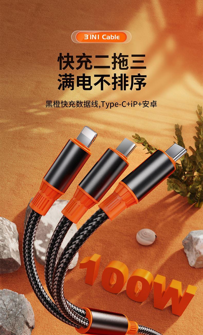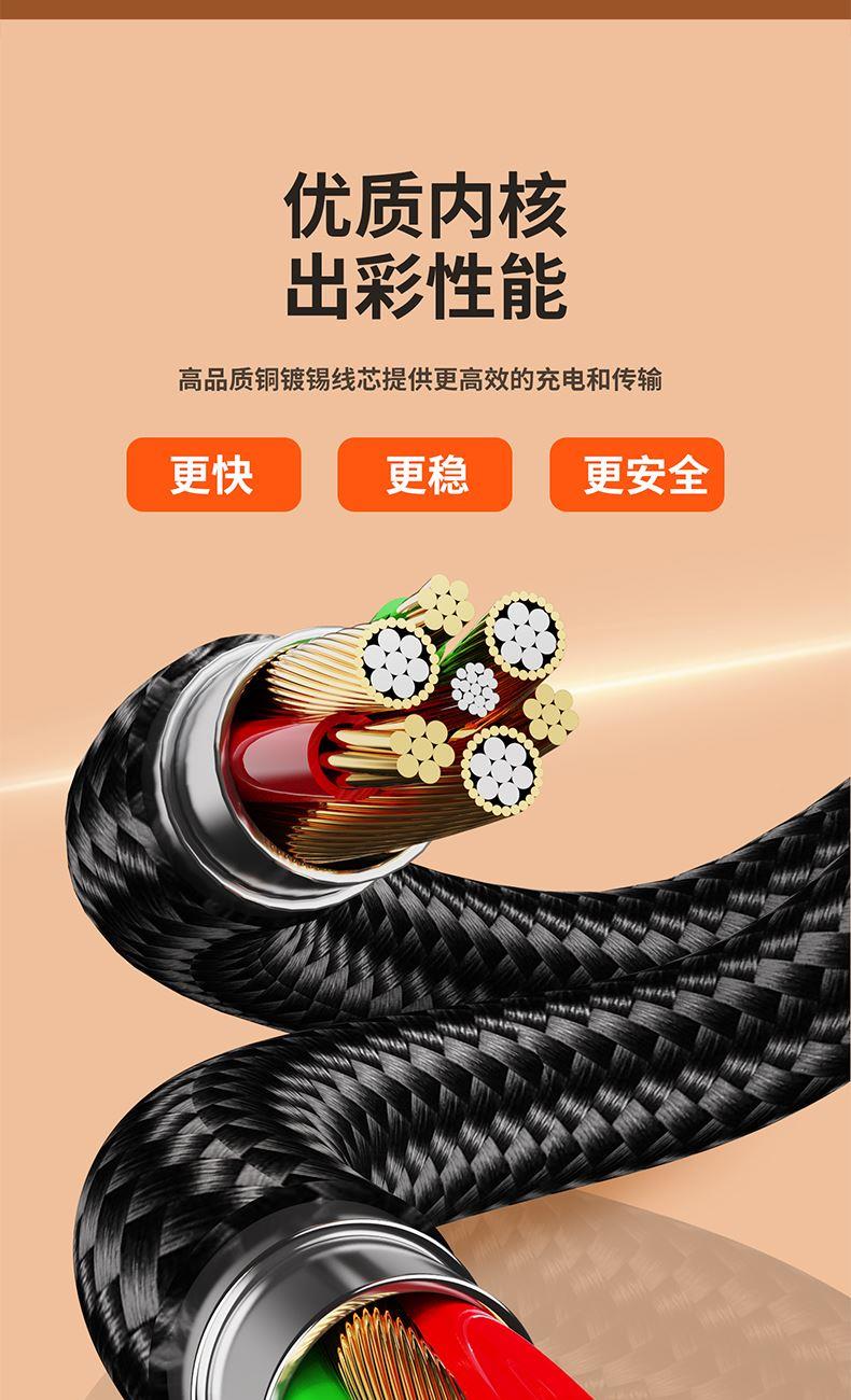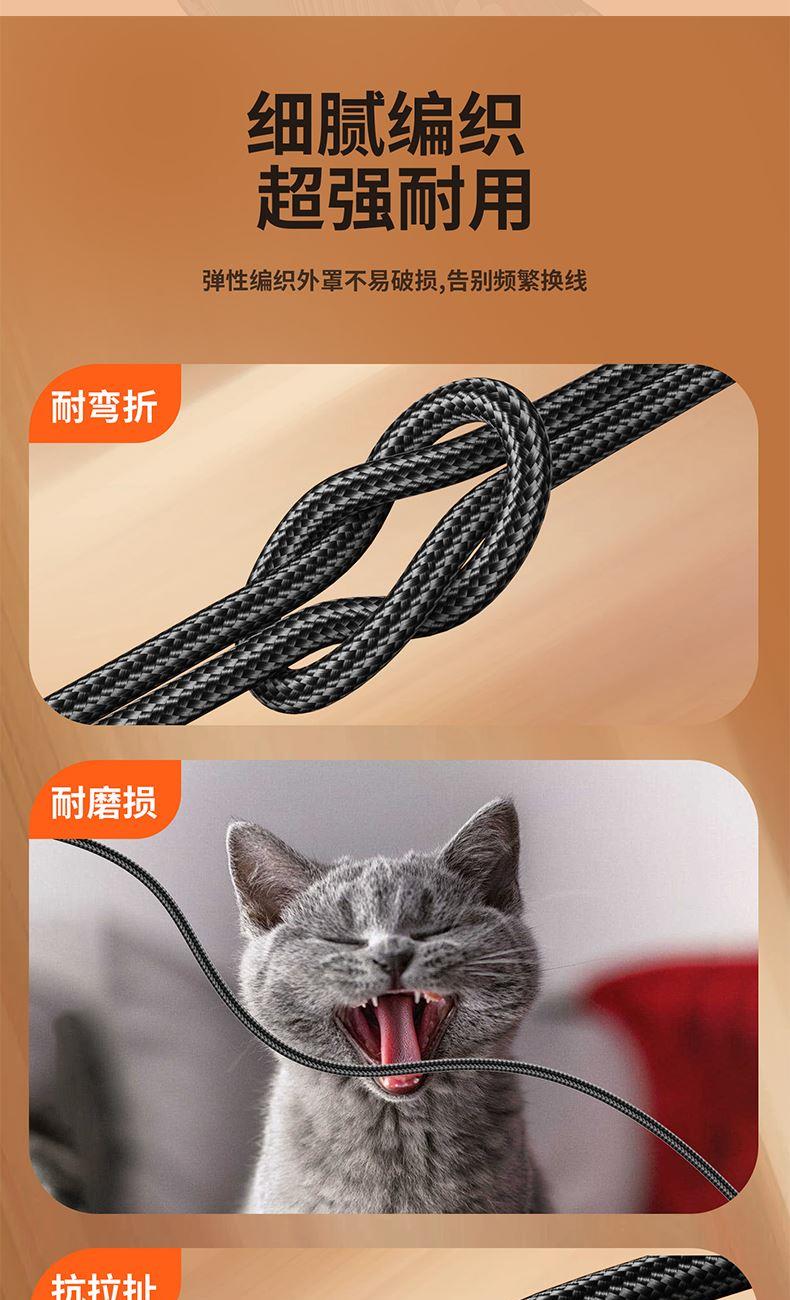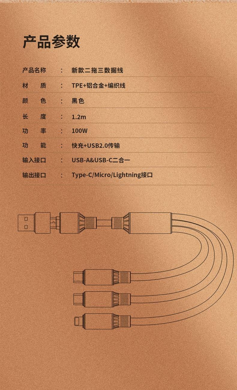 长 度:120cm 材 质:尼龙编织+铝合金 颜 色:黑色 接 口:苹果接口 安卓接口 Type-c接口 输出电流:5A 功 能:充电/数据传输 产品净重:82g