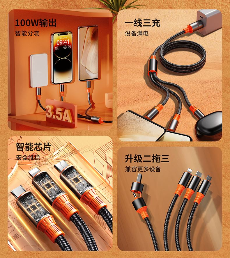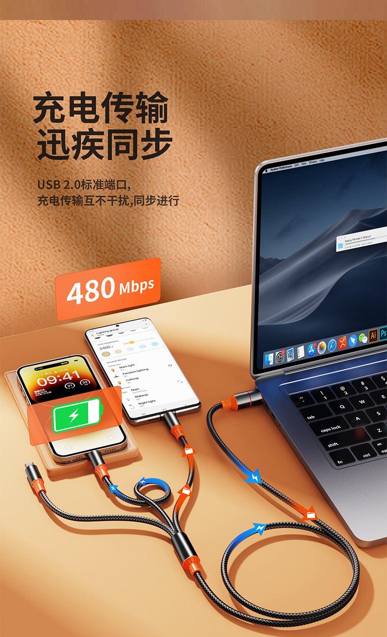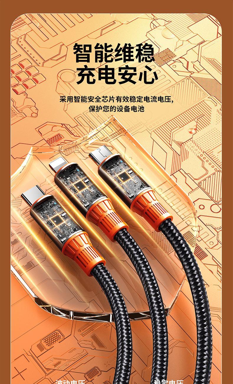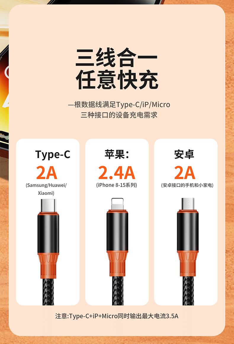 长 度:120cm 材 质:尼龙编织+铝合金 颜 色:黑色 接 口:苹果接口 安卓接口 Type-c接口 输出电流:5A 功 能:充电/数据传输 产品净重:82g