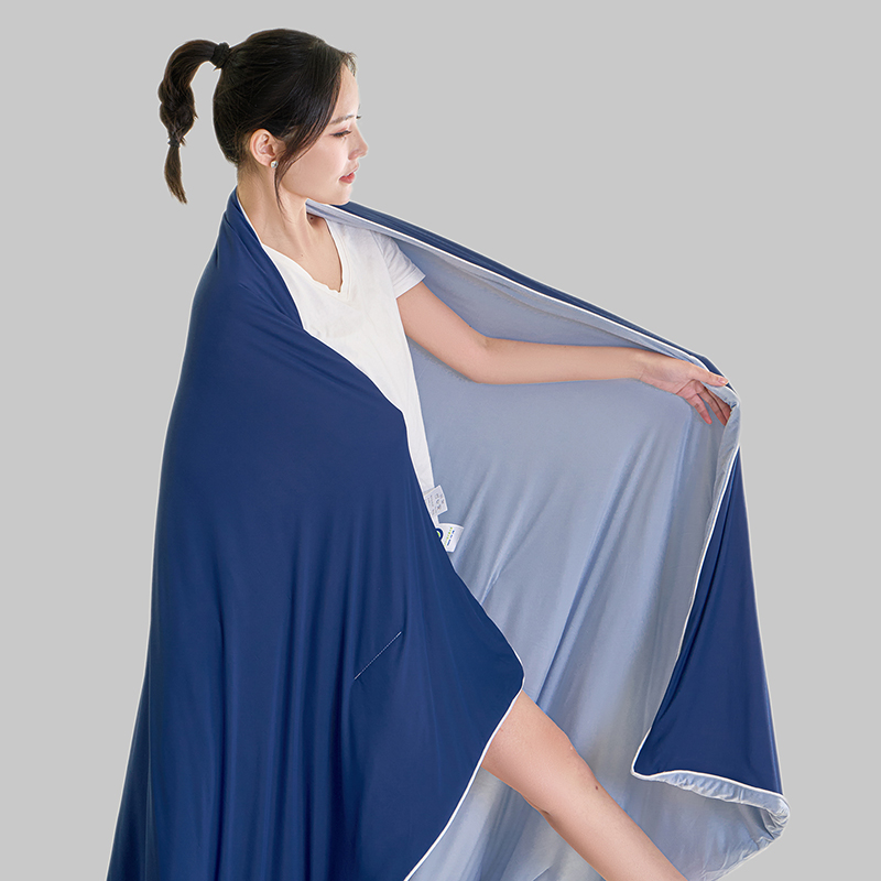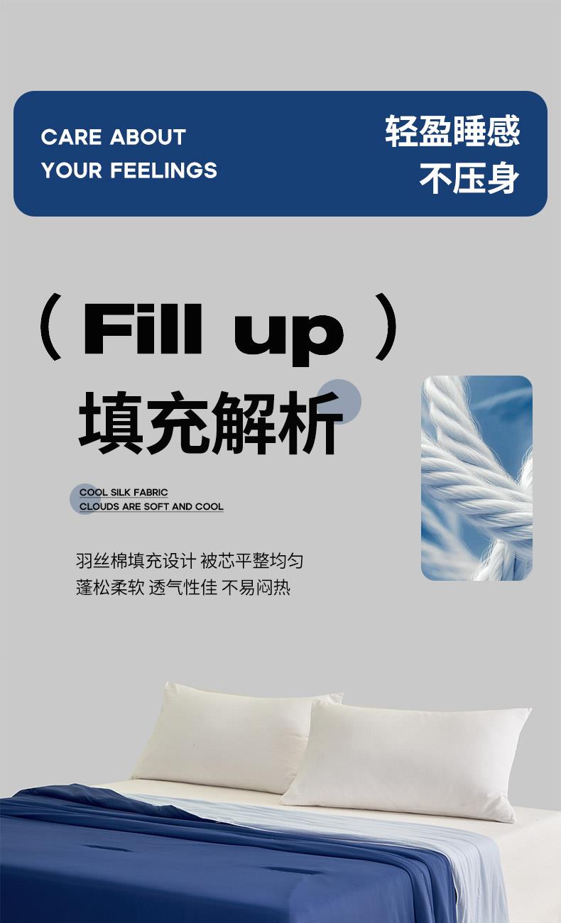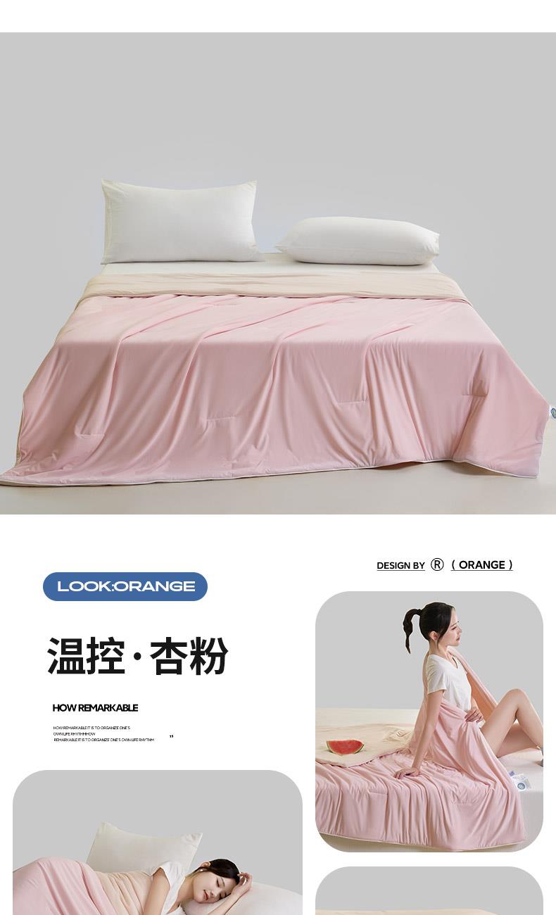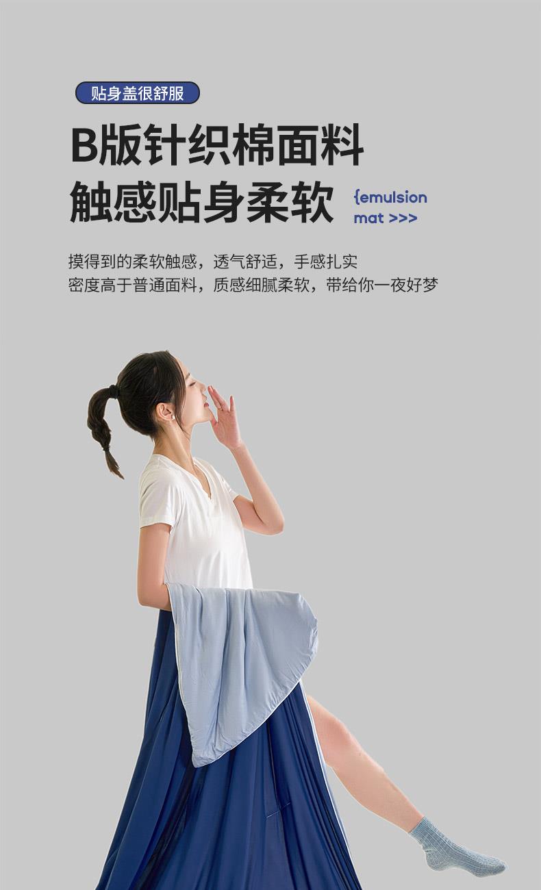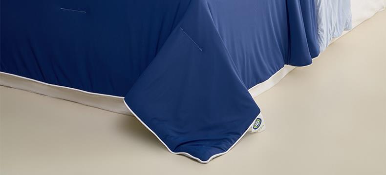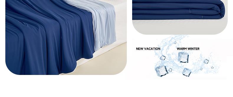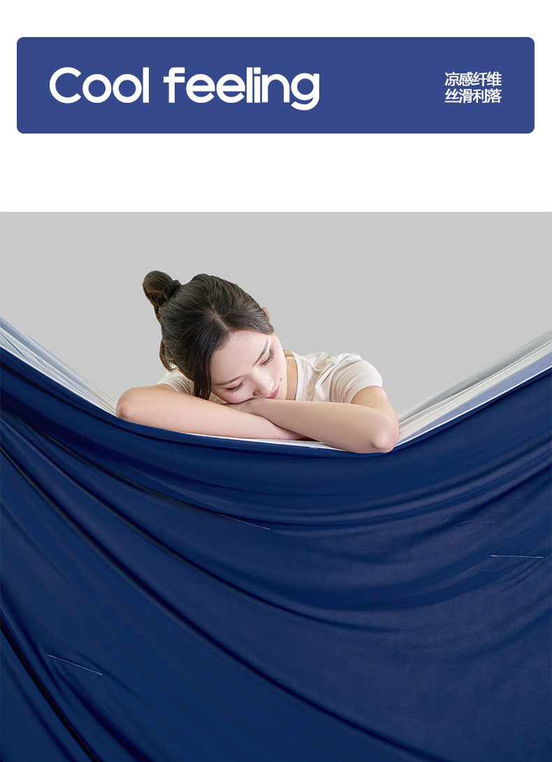 规格:150*200cm 面料: A面 凉感丝面料 B面 针织面料 填充:聚酯纤维埋绳包边 花型:温控-双蓝、温控-灰绿、温控-杏粉 双面凉感,一触即凉 一面冰感针织,一面柔滑亲肤,告别闷热黏腻,体感直降 -℃,整夜清爽好眠。高克重针织,软糯包裹感 升级高克重面料,触感软糯如云朵,包裹感十足,透气不闷汗,凉而不冰。可机洗不变形,省心又耐用 整张填充,机洗不结团、不起坨,洗完依旧蓬松柔软,告别手洗烦恼。 深睡控温科技,告别忽冷忽热 智能控温纤维,自动调节被窝微气候,夏天不闷,春秋不凉,四季都好眠。