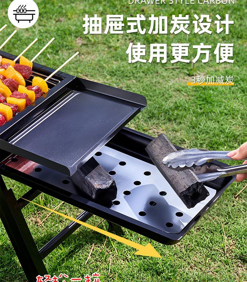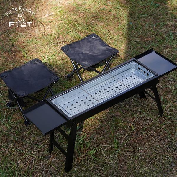 折叠凳材质:600D牛津布 +镀锌钢管 烧烤架材质:冷轧铁+不锈钢烤网 凳子尺寸:27*27*23cm 烧烤架尺寸:88*32*22.5cm 商品重量:约4.5kg