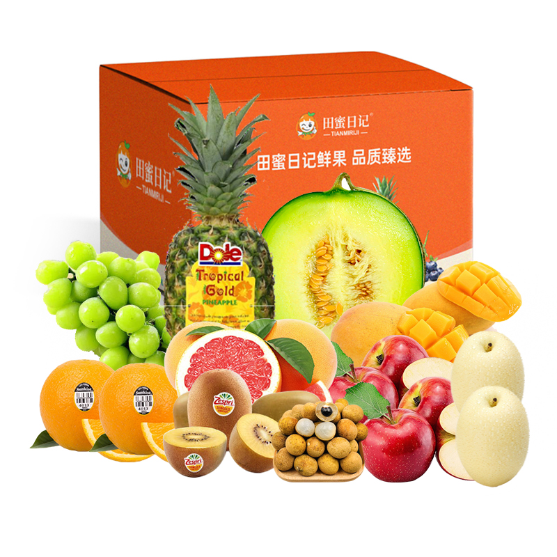 "都乐\佳农进口菠萝约1200g*1/个 佳沛阳光金奇异果 约120g*4/个 都乐网纹瓜约1000g*1/个 新西兰红玫瑰苹果 约180g*4/个 新奇士进口甜橙 约220g*2/个 进口龙眼约500g*1/盒 精品时令梨 约250g*2/个 阳光玫瑰葡萄约500g*2/盒 进口西柚 约300-350g*2/个 时令芒果约500g*1/盒 ( 时令鲜果单品断档会替换等价单品)"
