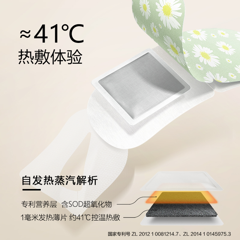 规格:1片/袋 10袋/盒 香型:洋甘菊 保质质:3年 1.可感绵密蒸汽,释放眼部压力。 2.持续20分钟以上有效控温,稳定升温不灼热,营养层添加SOD超氧化物歧化酶、透明质酸等营养物质,温润眼周肌肤。 3.添加天然萃取精油,多种香型可选,重构你的睡眠想象。 4.小云朵棉质面料、弱弹力耳挂、贴合工艺设计,呵护眼周脆弱肌肤,静享舒适体验。