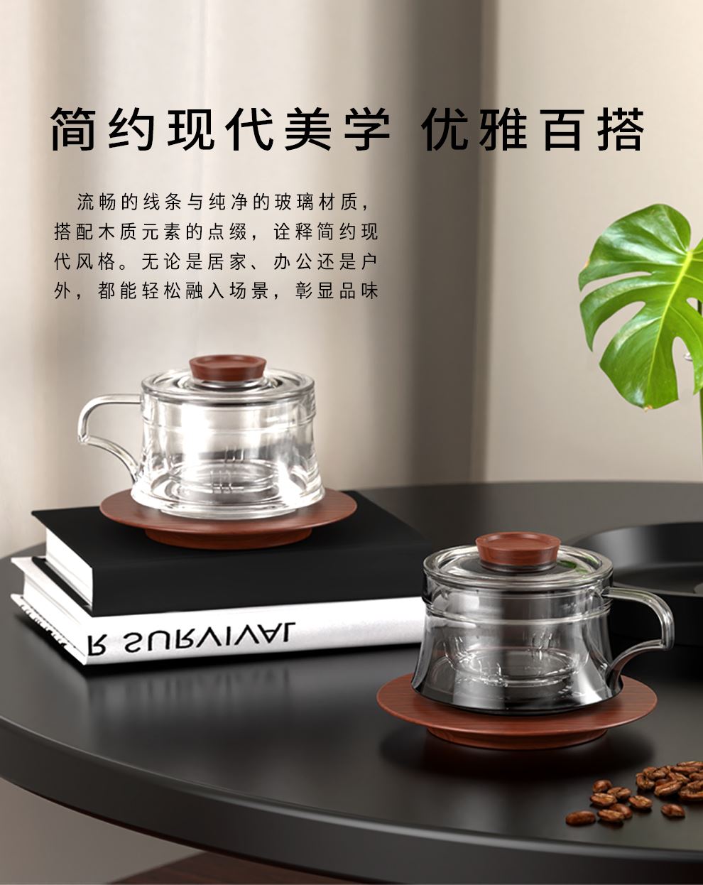 弥乐茶咖杯灵感源自东方文化中包容自在的禅悦境界,以咖啡为媒介传递“小满即安”的生活哲学,寓意在繁忙日常中寻得片刻闲适,杯盏间盛满能量。 · 采用具有凹凸纹路质感的路宝釉,触感温润细腻,光影下层次感纹理,赋予杯器艺术品级的手作温度与现代极简气质。 · 盖钮与杯碟精选木质打造,防烫隔热且保留自然木纹,与路宝釉瓷光形成反差美学,诠释传统材质与现代功能的共生哲学。 · 包装采用烫金+激凸工艺,简约精致,从开盒到取杯充满仪式感,兼顾收藏价值与馈赠心意,适配都市品质生活场景。