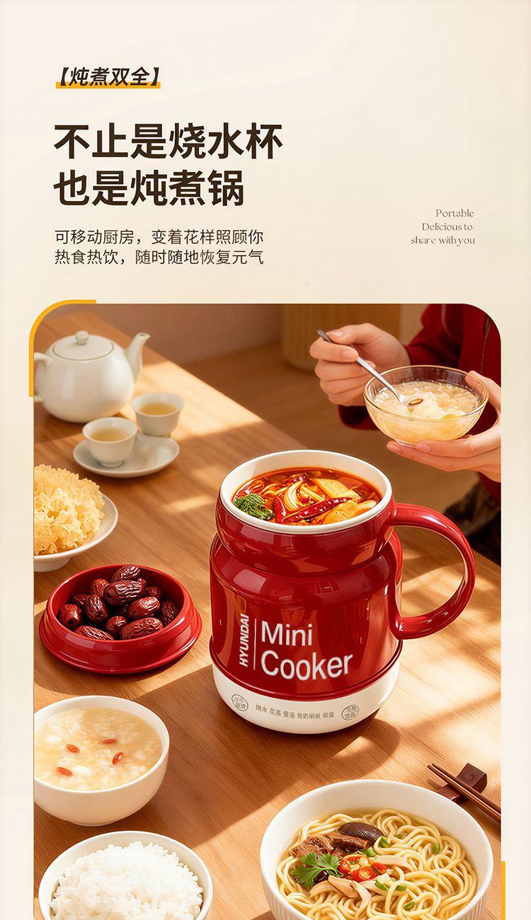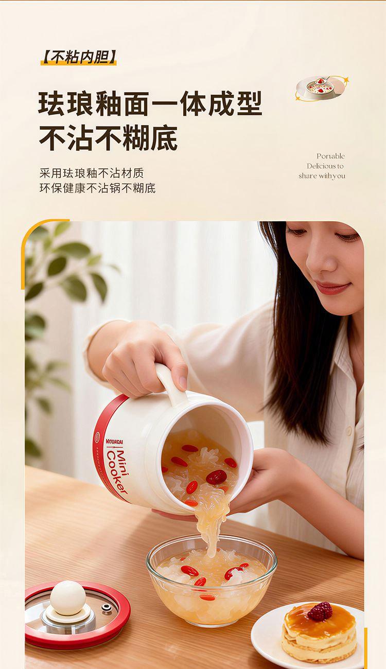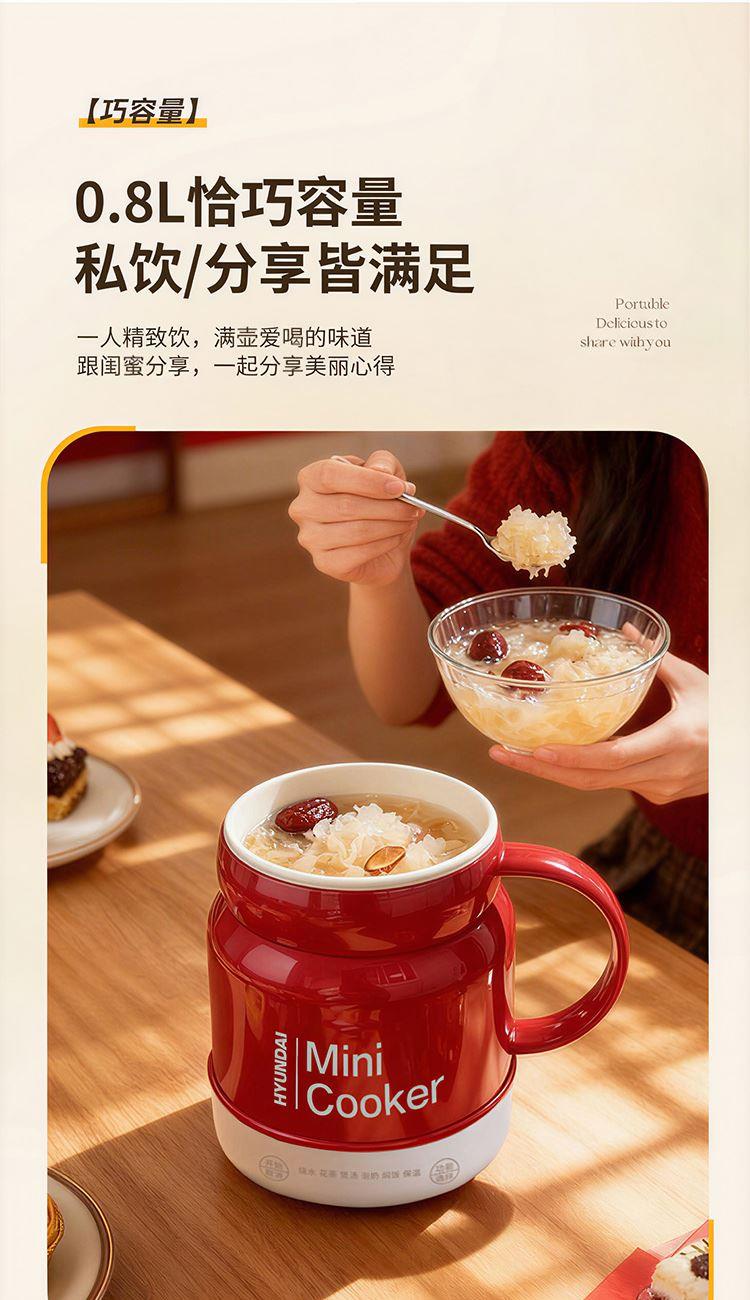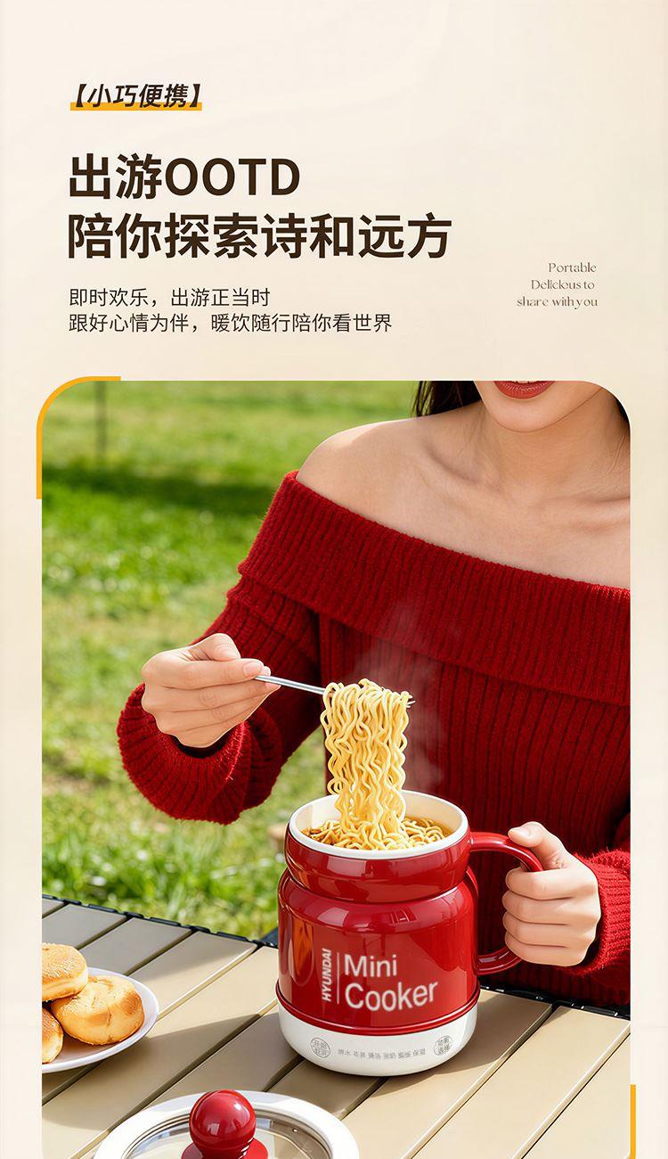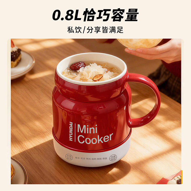 精致身材,放办公桌上不占地方;800ml私享容量,煮完后可直接当碗吃,不用多洗碗;