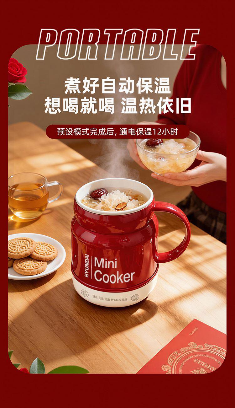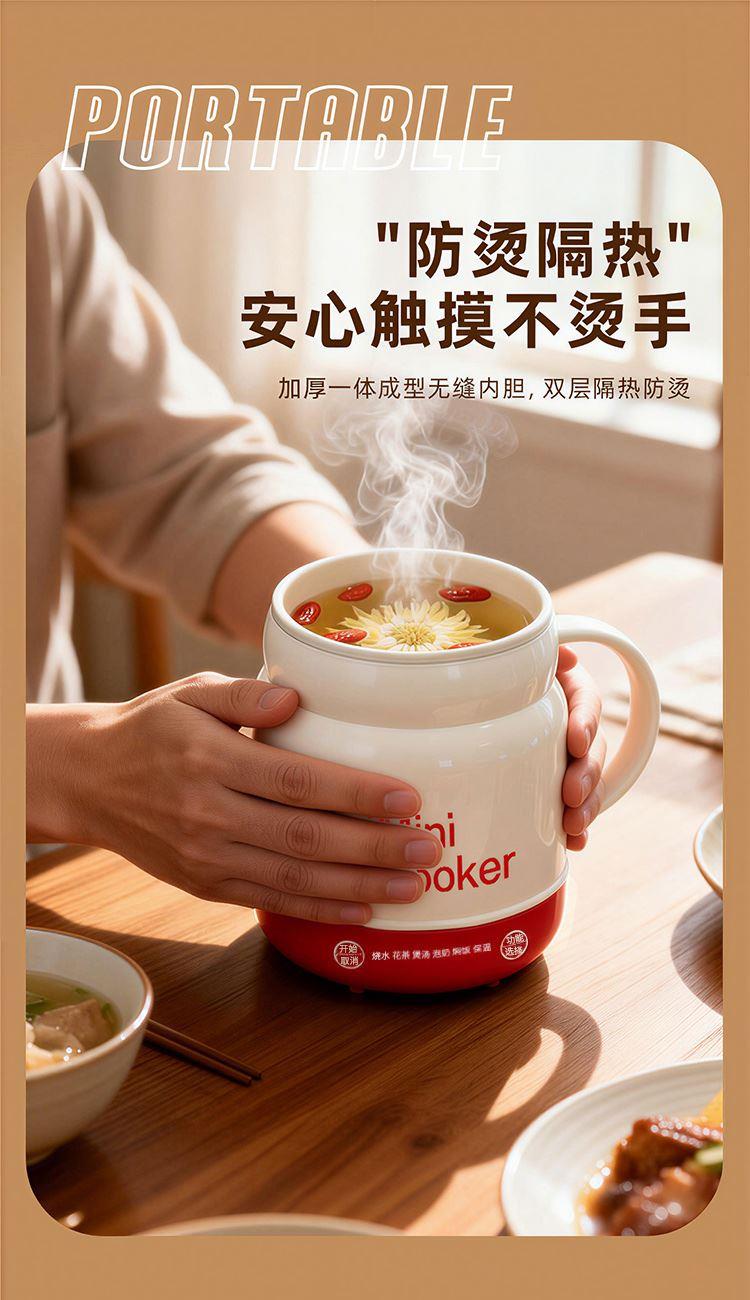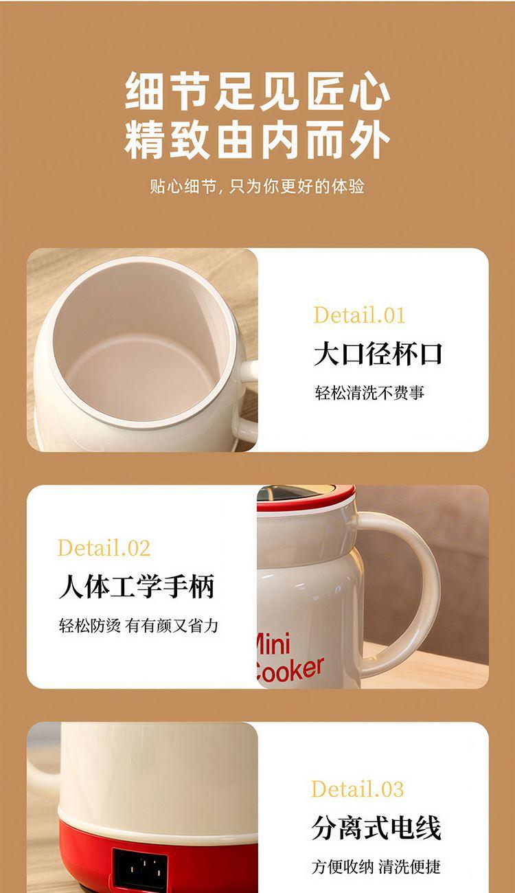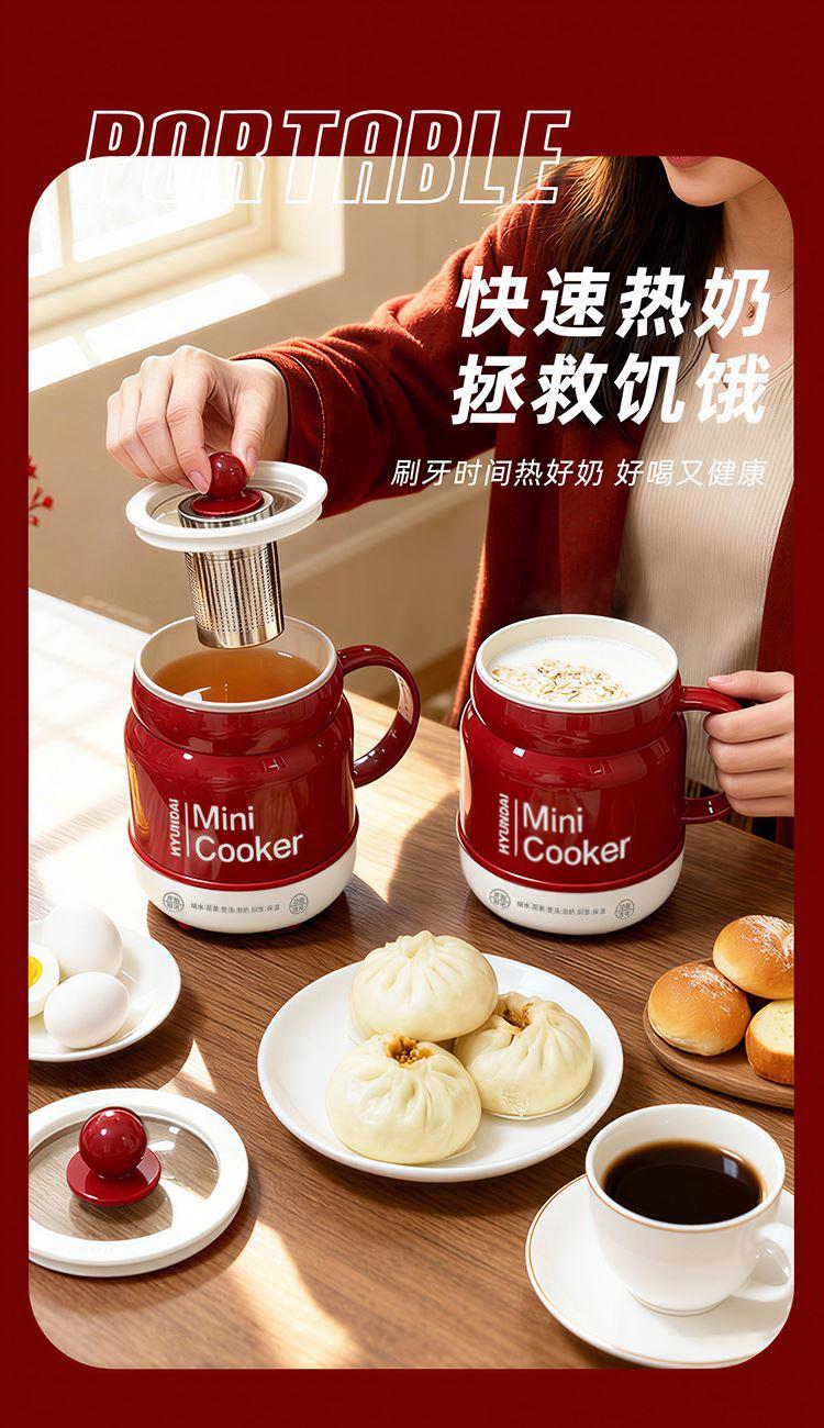 精致身材,放办公桌上不占地方;800ml私享容量,煮完后可直接当碗吃,不用多洗碗;
