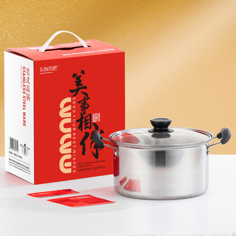 产品规格:20cm 产品材质:410不锈钢 包装方式:opp透明袋+手提彩盒 彩盒尺寸:18.8cm*11.9cm*23cm 美事相伴开门红,新年开篇福满庭,日子红火乐不停 采用国际标准不锈钢板材精工制作,持久耐用,导热更均匀。 一锅多用,煮牛奶,煮甜点,煮面,煲汤不在话下。 钢化玻璃盖,美观耐热,掌握烹饪过程,美味一目了然。 兼容多种炉具,可以电磁炉,煤气炉,电陶锅,光波炉。