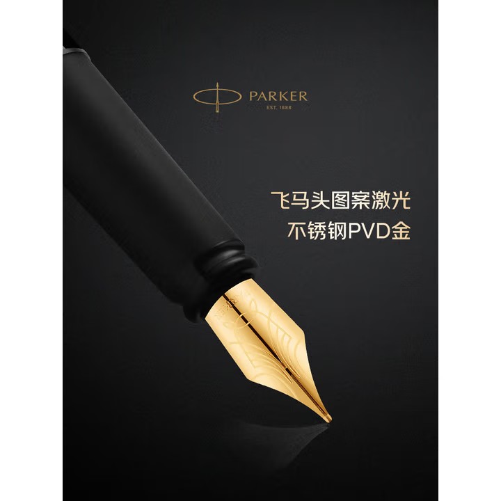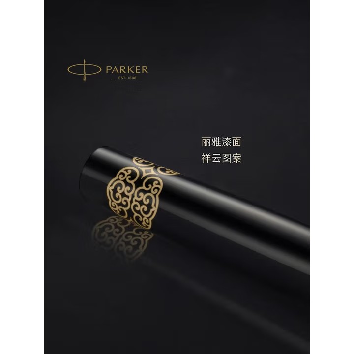 规格:含威雅骏马金夹墨水笔、大墨水、PU笔套 笔尖:飞马头图案激光不绣钢PVD金 笔基:黑色树脂 笔身:黄铜材质,丽雅漆面,笔身祥云图纹 派克威雅骏马金夹款,经典再造 流畅曲线搭配镀金细节,迸发进取之力
