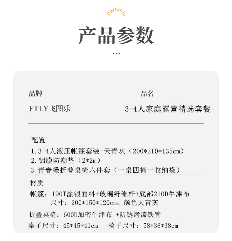 • FTLY飞图乐3-4人家庭露营精选套餐ZP1003