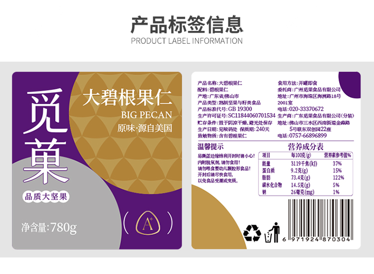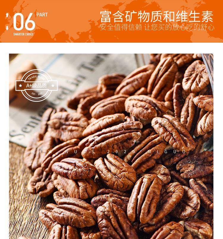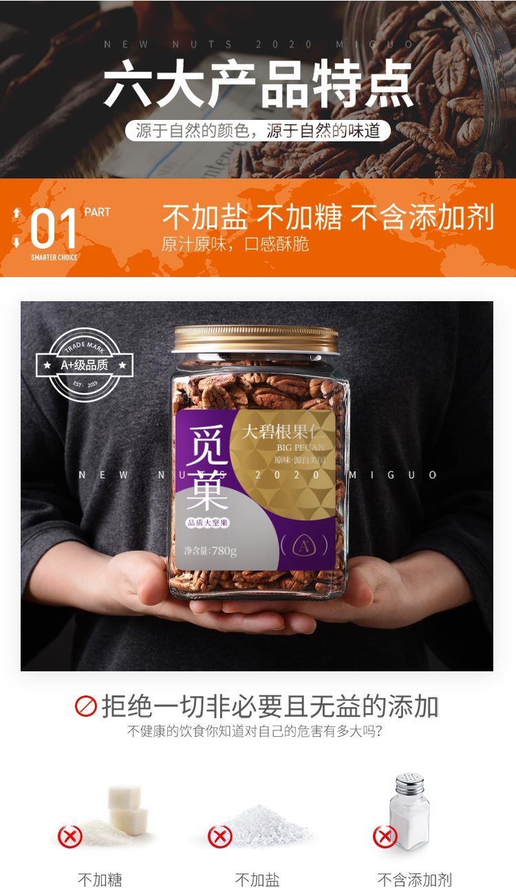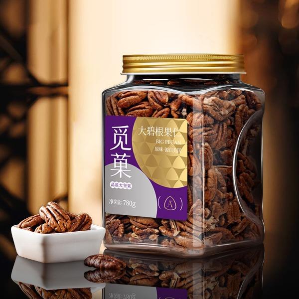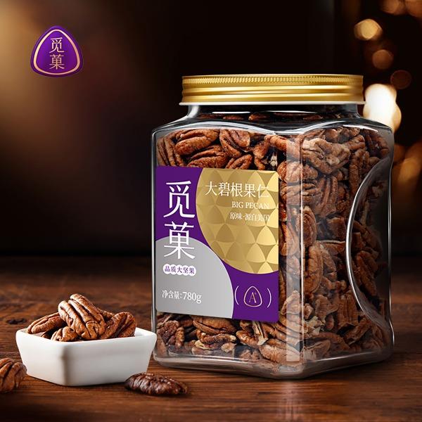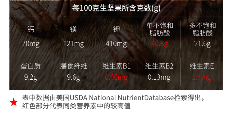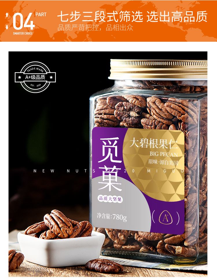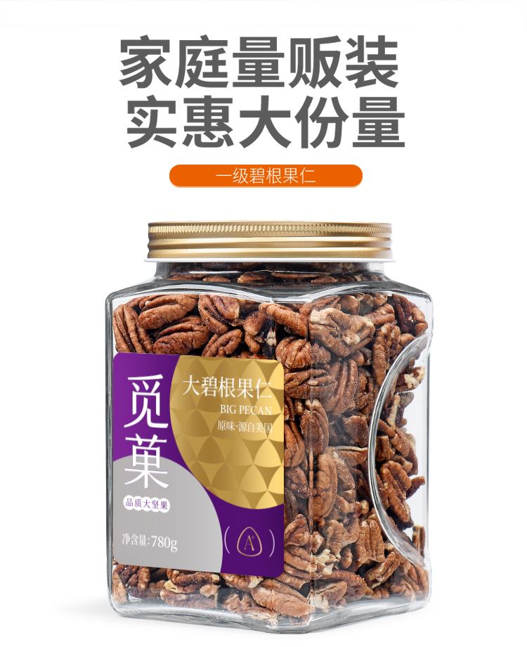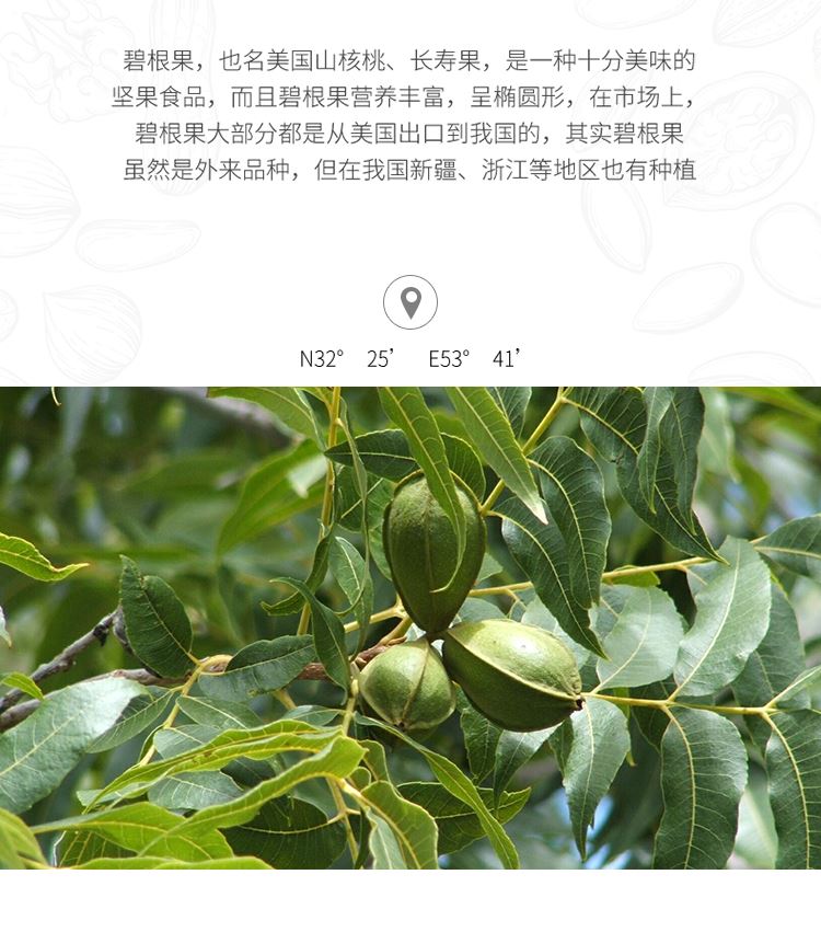 1、碧根果 ,产自美国 :也名美国山核桃、 长寿果 ,是一种十分美味的坚果食品 , 而 且碧根果营养丰富 , 呈椭圆形 , 2、 口感: 口感酥脆 , 嚼食淡淡的奶香 , 唇齿留香回味 3、 营养: 蛋白质 , 单不饱和脂肪、 维生 素B1 4、 壳薄仁厚 ,果仁酥脆 ,奶香回味 , 营 养丰富