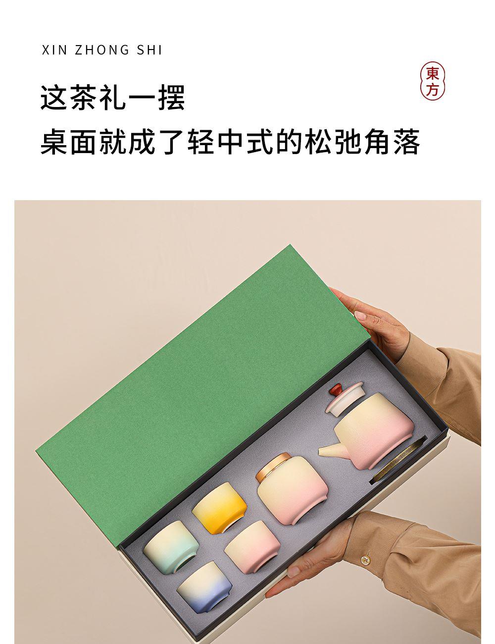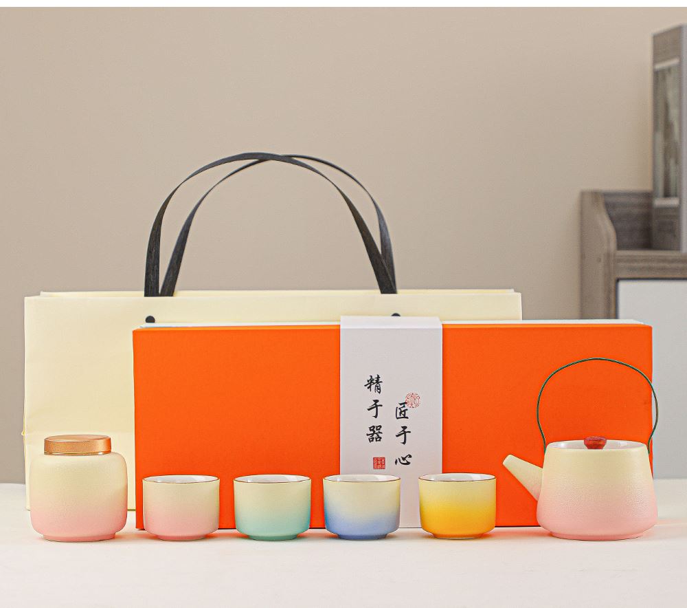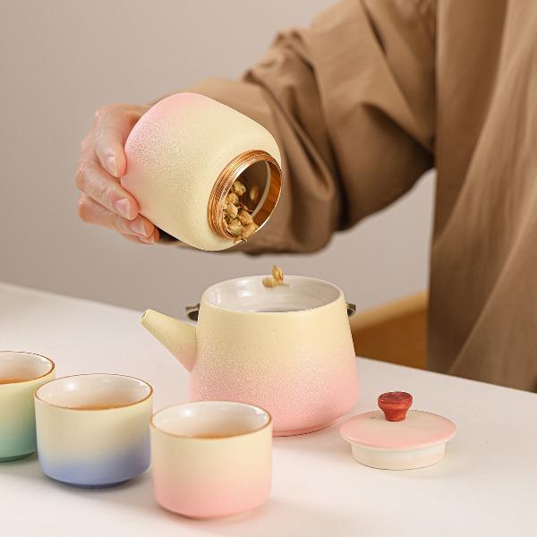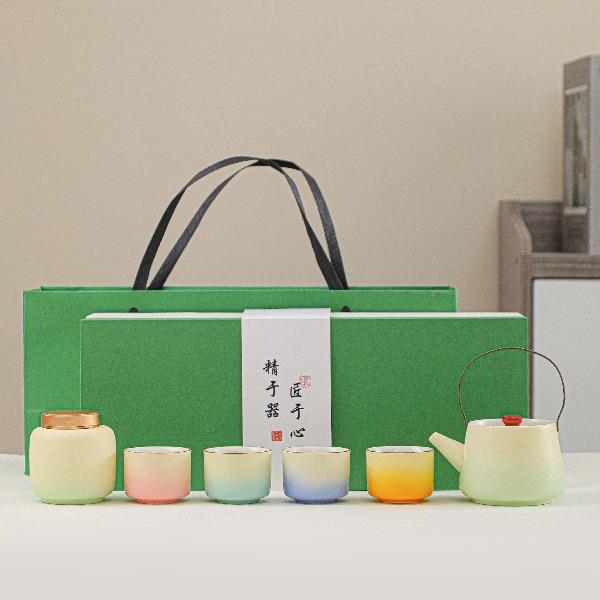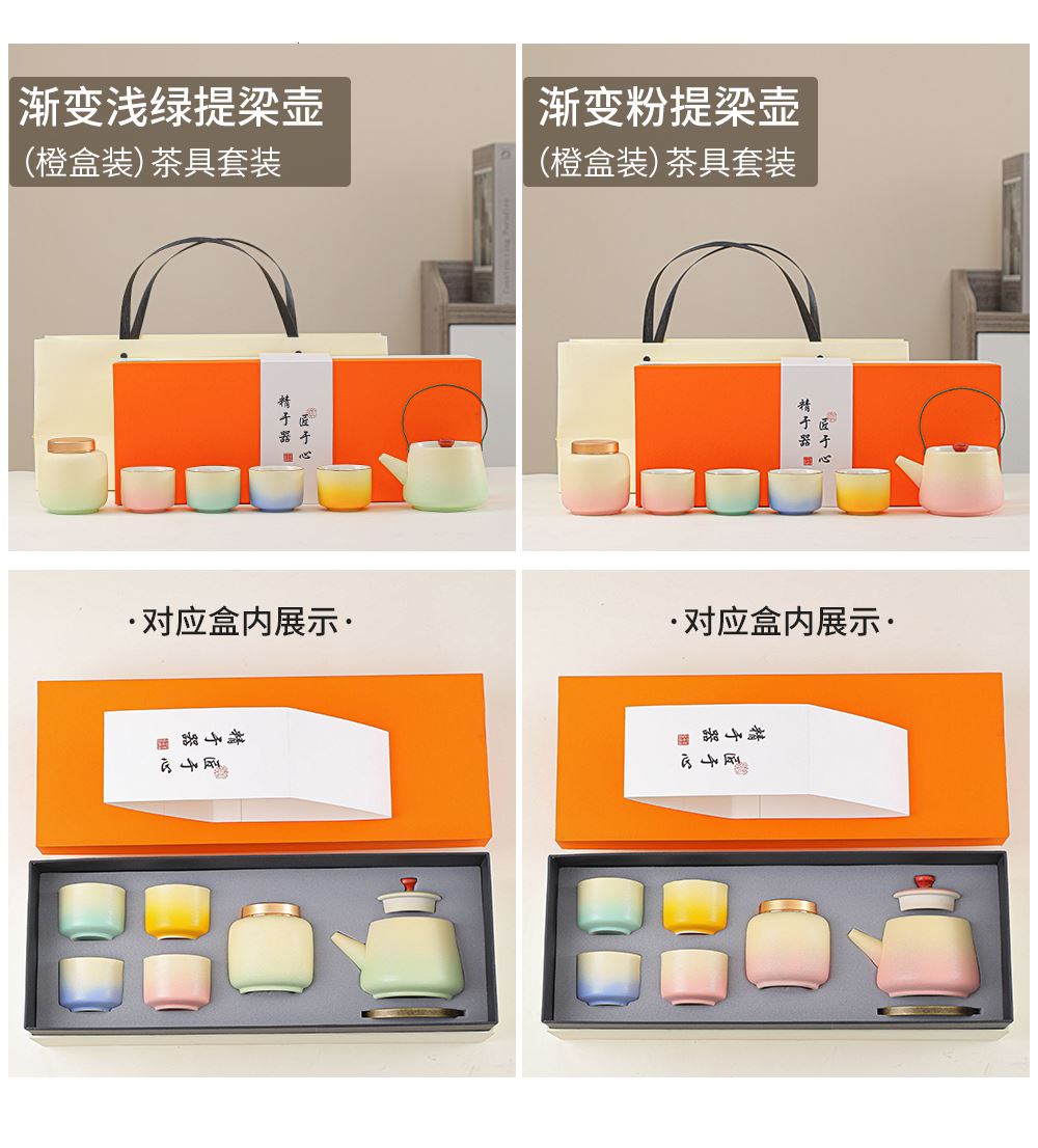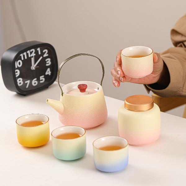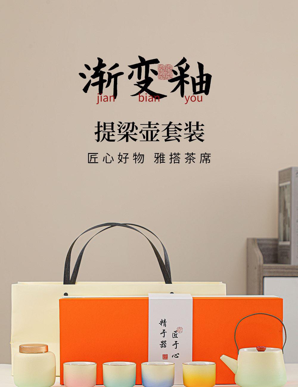瓷语花香提梁壶渐变釉茶具套装