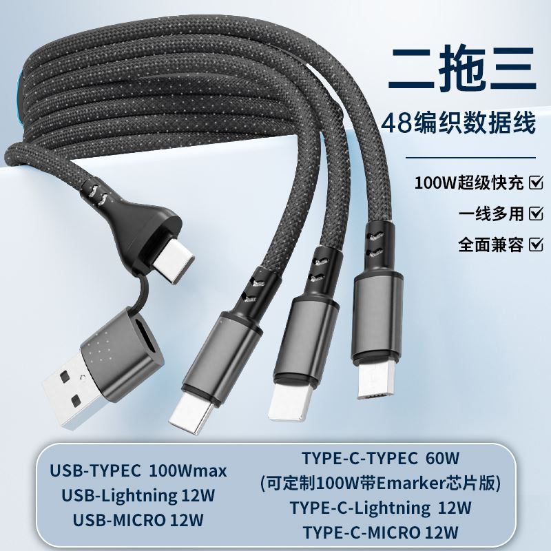 胜源通100W快充二拖三充电线SYT-CT21