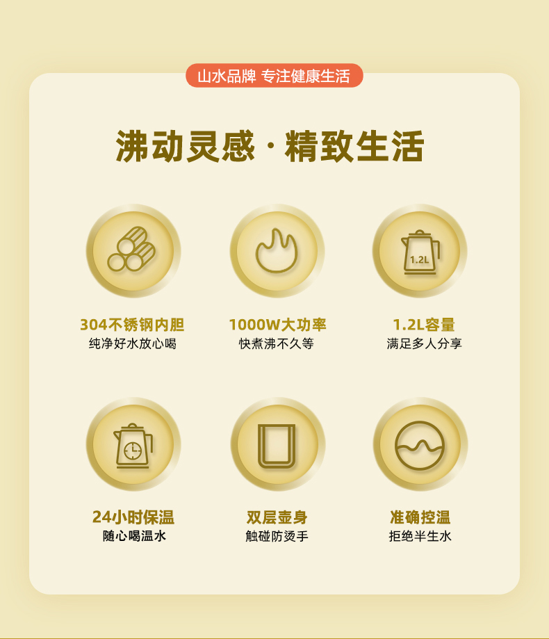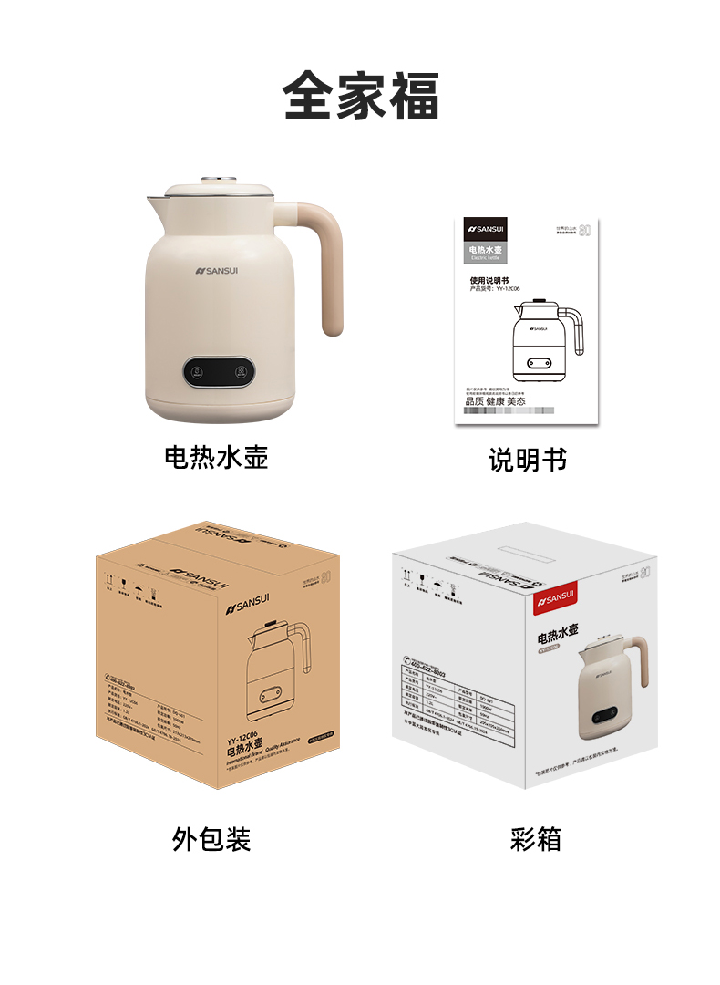 山水SANSUI双层防烫电热水壶YY-12C06