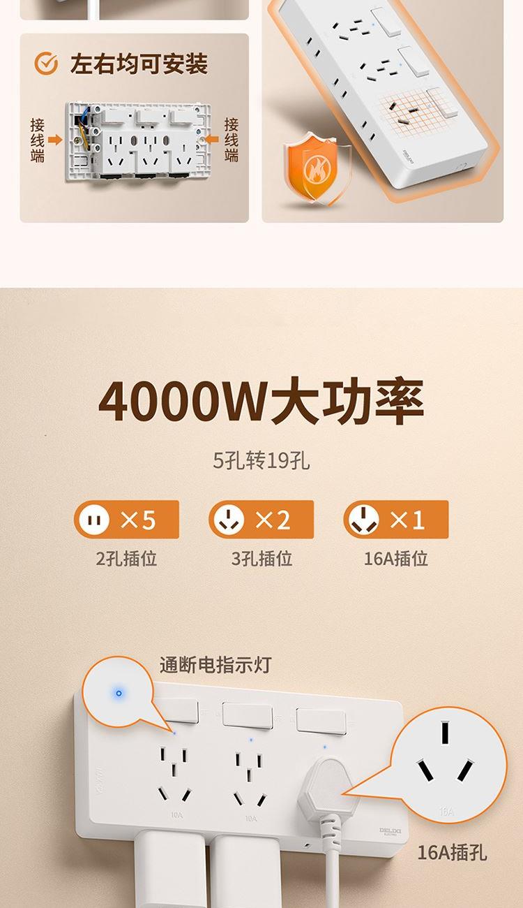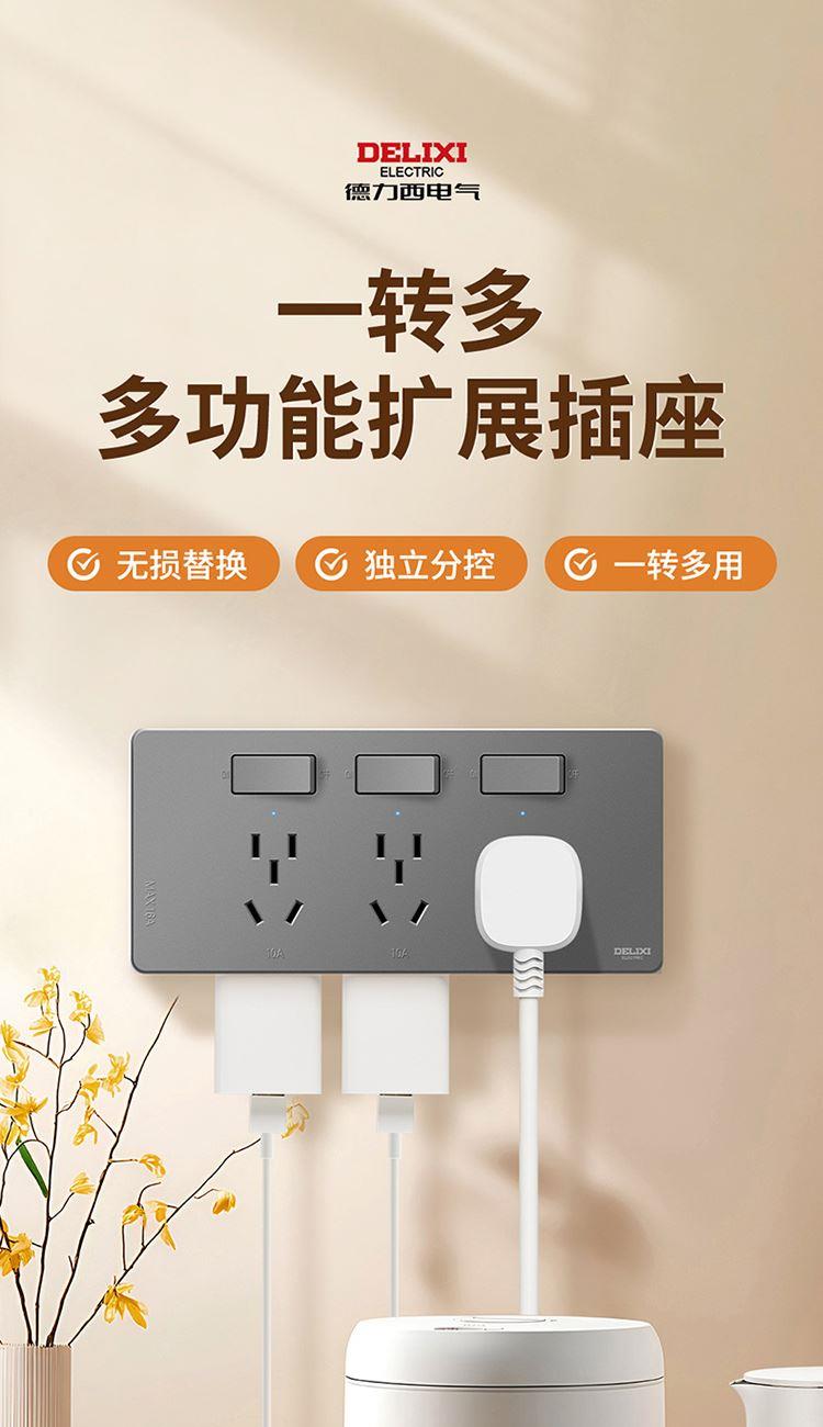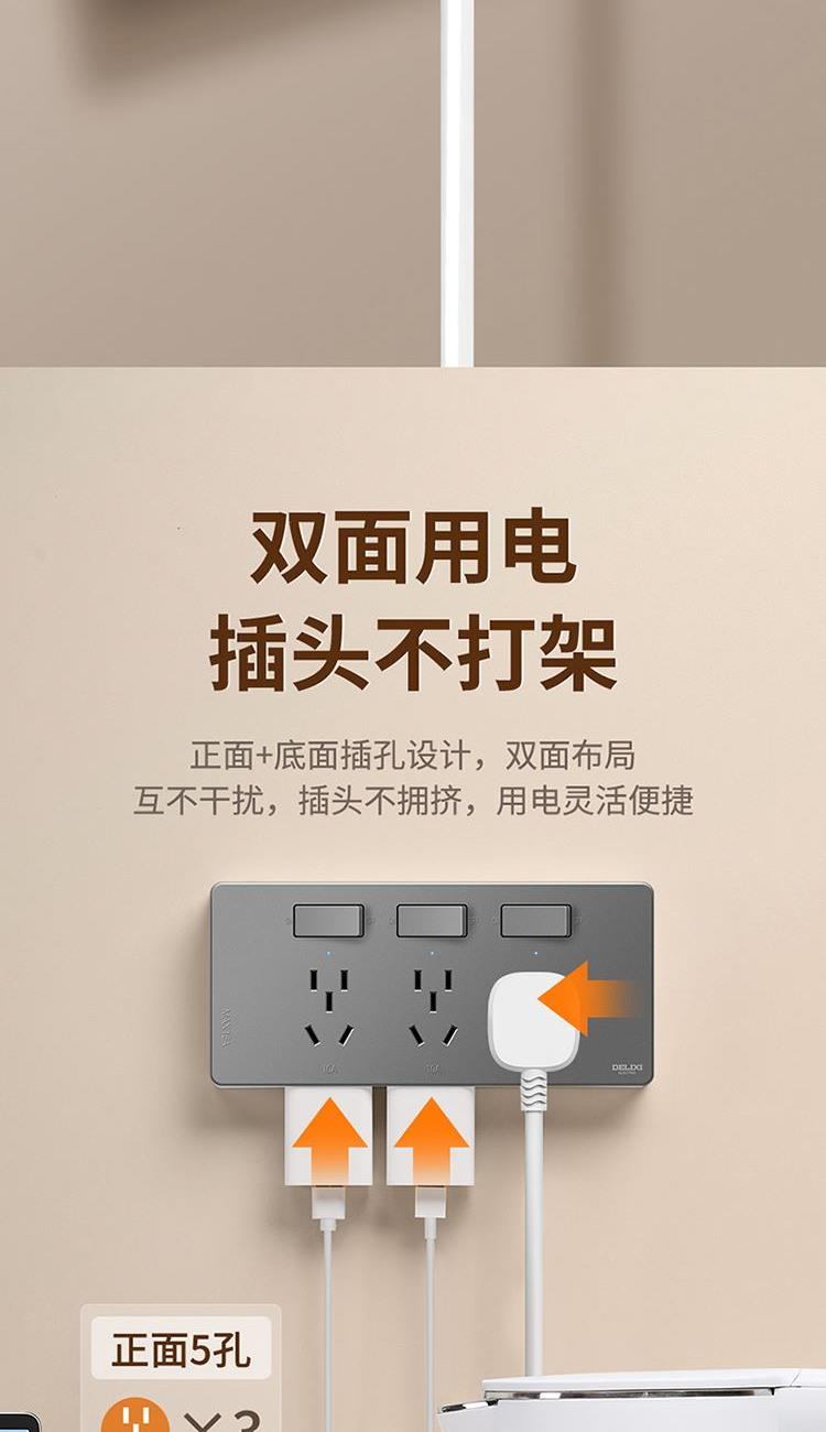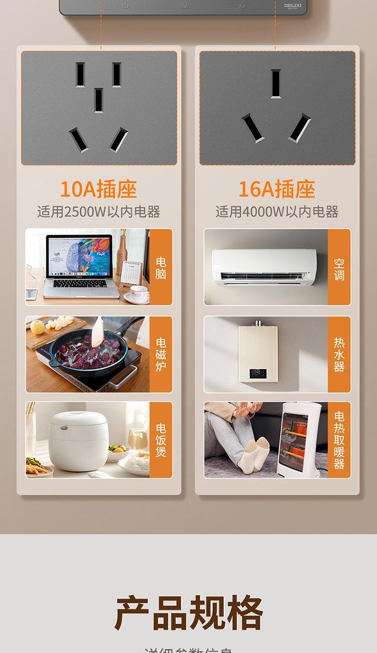 德力西DETC系列十六孔插座10A+三孔插座16A(星空灰)