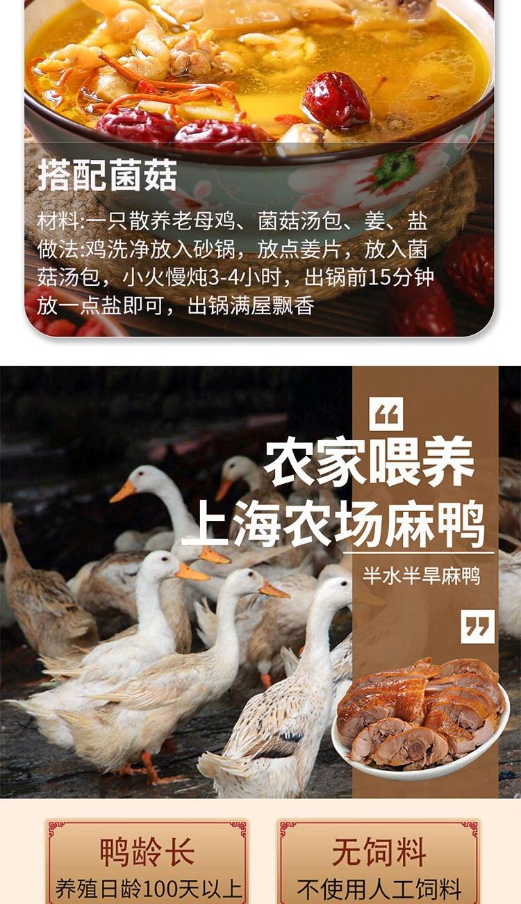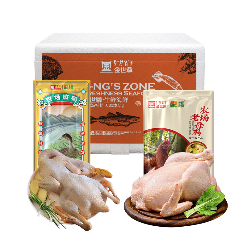 金世尊X光明上海农场散养老母鸡1kg*1只+散养麻鸭950g*1只 不配送区域:新疆、西藏、海南、内蒙、甘肃、青海省全域不支持发货 云、贵、川及东北三省仅支持省会城市及部分市级城市发货。发货为实惠装白色泡沫箱。