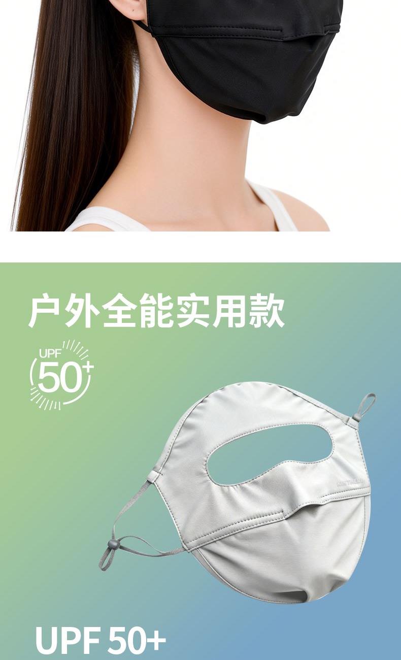 货 号: JFS-1531 颜 色: 漫暮黑、浅月粉、藤雾灰 产品卖点: 实力防晒50+、轻薄隐形防护,隔离紫外线透气超稳,水洗不减防晒力、0透光护眼角,凉感升级,持久冰爽; 全脸硬核防晒,全遮光护眼角,隐藏式开口,呼吸自如,轻薄凉感透气;吸湿速排舒适,立体修饰脸型,四面高弹不紧绷。 尺寸:F(均码)