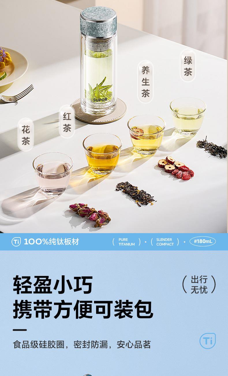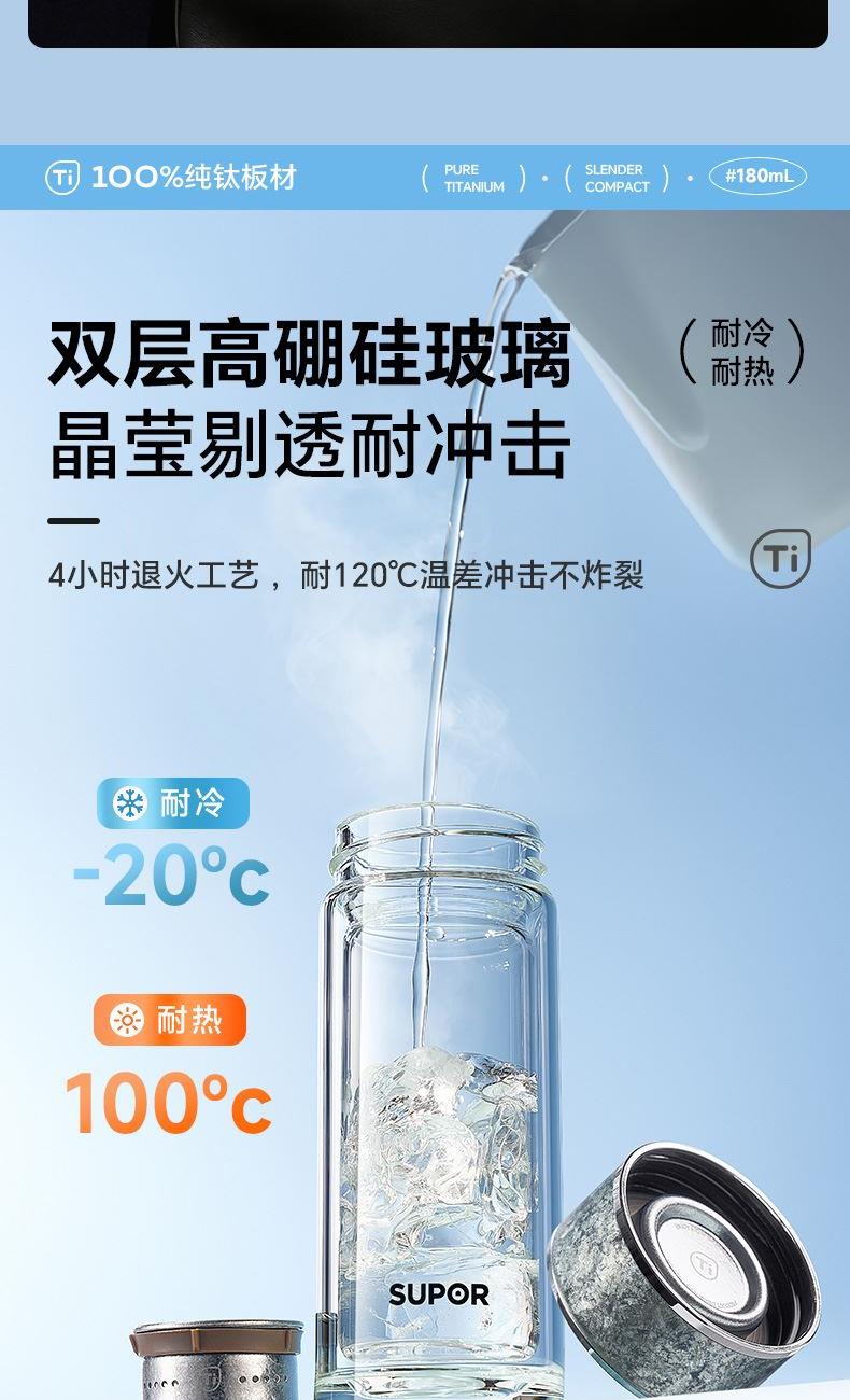 苏泊尔纯钛耐热玻璃杯纤巧180