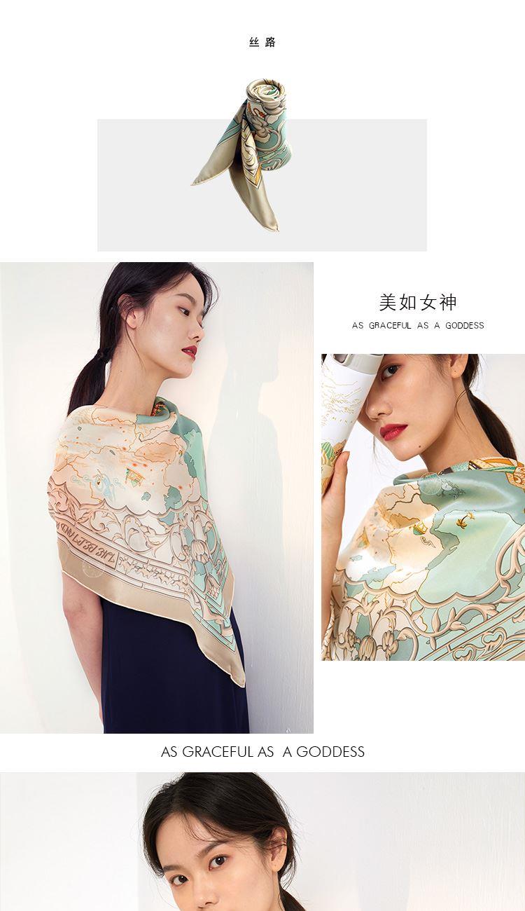 旅行 户外 真丝大方巾 材质:桑蚕丝 风格:中国风 民族风四季通用 丝绸之路文化遗产-带一路联通世界 规格:90*90CM真丝素绉缎 手工台版印染 曙光卷边 礼盒包装