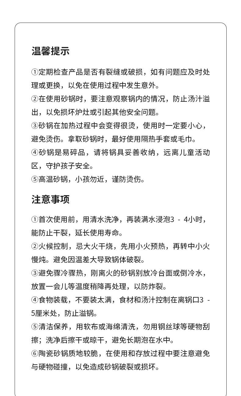 配 置:砂锅*1
