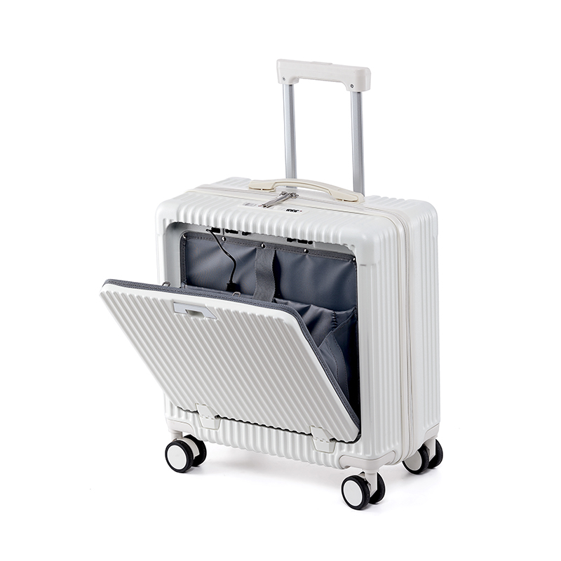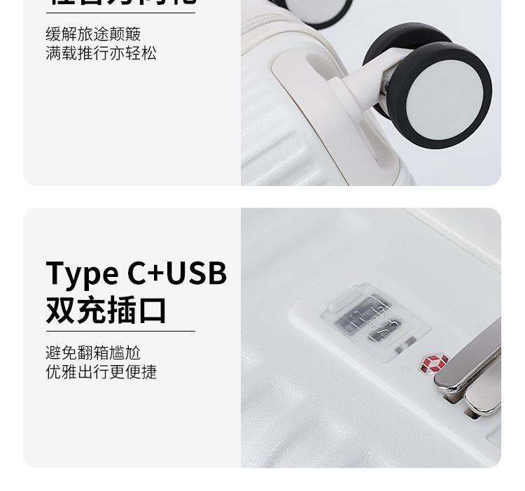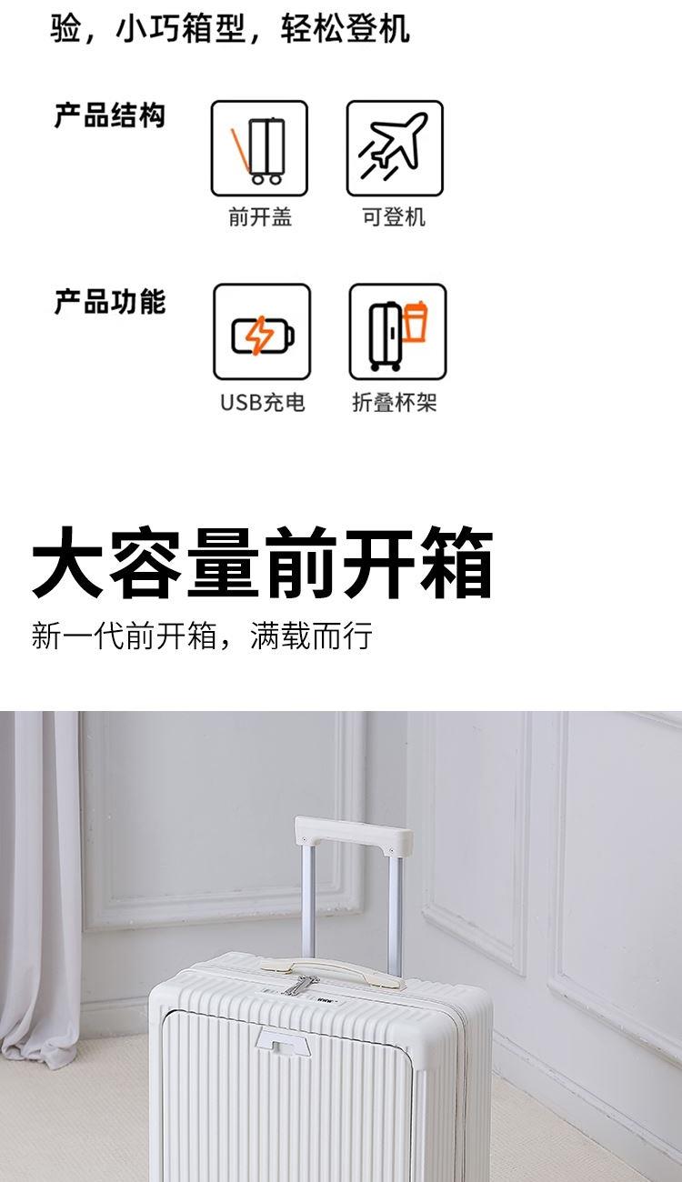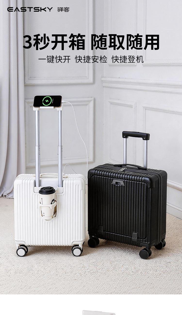 1.合金顺滑拉杆,管壁厚实,经久耐用。 2.灵活飞机八轮,360°旋转,稳定顺滑,让旅途更省心。 3.内里左右分区,携带物品分装合理。 4.前开盖设计,拿取更方便,出行更便捷。