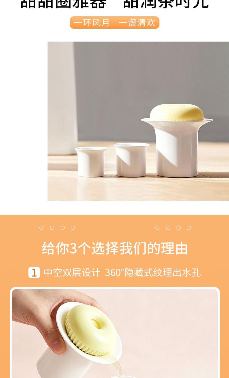 1.以甜甜圈为设计原型,将甜点自带的喜悦感与茶具的雅致气韵巧妙融合,打造出兼具亲和力与萌趣感的IP视觉符号。
