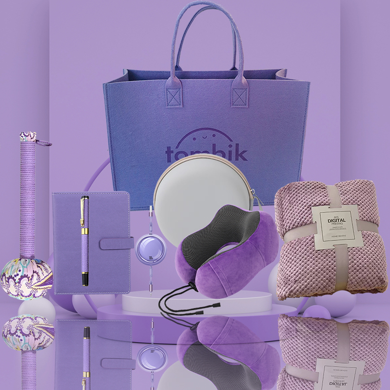 参数: 条码:6974230744758 磁吸布记忆棉U型枕:尺寸28*26*14cm,重量300g,枕套材质磁吸布+弹力绒,枕芯材质记忆棉内胆,记忆U型护颈,长途出行更轻松,布艺收纳盒,一只手机的大小,轻量出行,磁吸布+弹力绒面料,亲肤透气,更舒适 记忆棉U型枕收纳盒:材质布艺编织,尺寸16*16*10cm 法兰绒菠萝格午睡毯:材质220克D丝法兰绒,尺寸100*150cm,净重420g,表面覆盖了超柔软的法兰绒绒毛,编织紧密,手感柔顺机洗不掉毛,采用活性印染工艺,更亲肤贴身,卷边工艺,有效固定毛毯边缘,细节满满 紫色艾草锤:尺寸31cm 紫色搭扣笔记本:封面PU平纹,内页80克80张,本白道林纸 紫色龙头笔:材质钢杆+铜件,尺寸13.8*1.5cm,净重33.4g,笔芯粗细0.5mm 100W四合一超级快充数据线:材质TPE/ABS/铝合金,重量55g,线长1米,接口TYPE-C/苹果,协议SCP QC3.0+ PD100W,铜丝规格纯铜 50*2+10*3 ,特点双TYPE-C配置emarker芯片支持PD100W     毛毡包:尺寸33*25*15cm